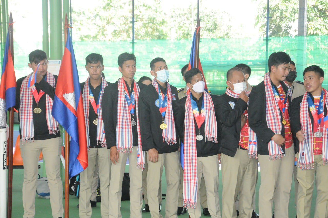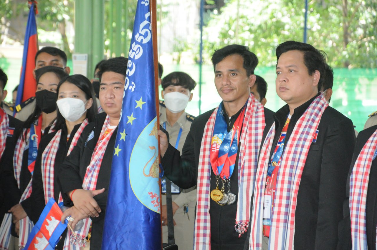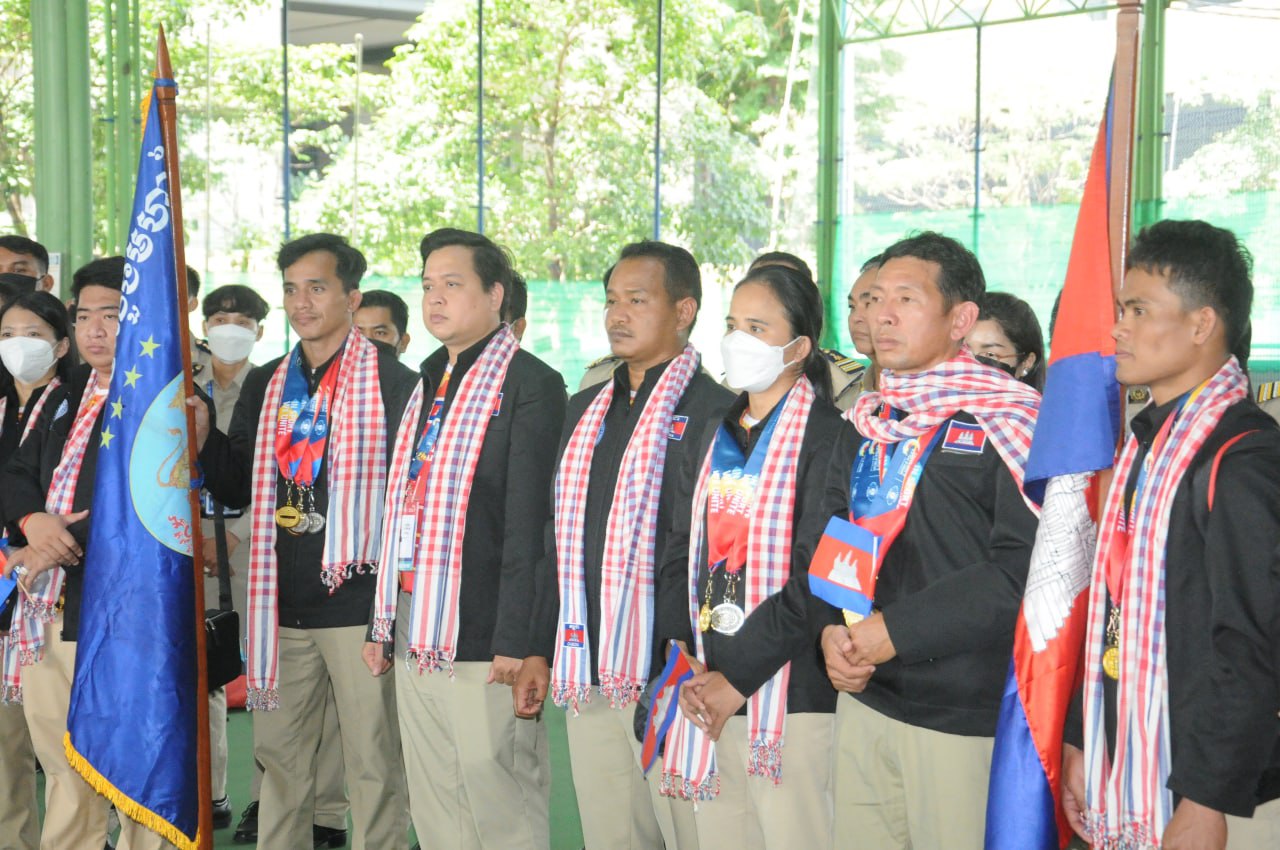 ភ្នំពេញ៖នៅថ្ងៃទី២ខែសីហាឆ្នាំ២០២២ក្រុមកីឡាករកីឡាការិនីរបស់អង្គភាពកីឡានគរបាលជាតិកម្ពុជាបានមកដល់ប្រទេសកម្ពុជាវិញហើយដោយនាំយកមកនូវ មេដាយចំនួន៣៣ គ្រឿងជូនជាតិមាតុភូមិនិងអង្គភាពនៃព្រឹត្តិការណ៍កីឡានគរបាលនិងកងពន្លត់អគ្គិភ័យពិភពលោក លើកទី១៩ ឆ្នាំ២០២២ “The 19th World Police and Fire Games 2022” នៅទីក្រុង Rotterdam ប្រទេសហូឡង់ ។