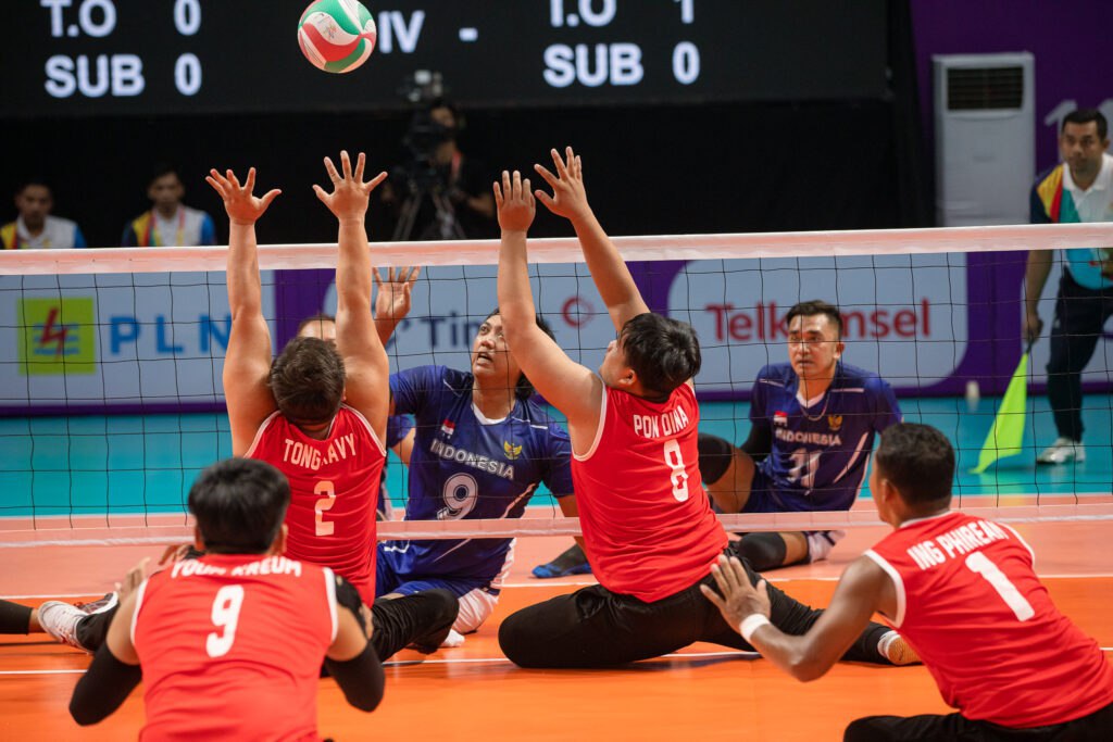 ភ្នំពេញ៖ល្ងាចថ្ងៃទី២សីហាម្សិលម៉ិញនេះក្រុមបាល់ទះអង្គុយជនពិការកម្ពុជាបានយកឈ្នះម្ចាស់ផ្ទះឥណ្ឌូនេស៊ីនៅវគ្គពាក់កណ្ដាលផ្ដាច់ព្រ័ត្រដ៏តឹងតែងបំផុត។