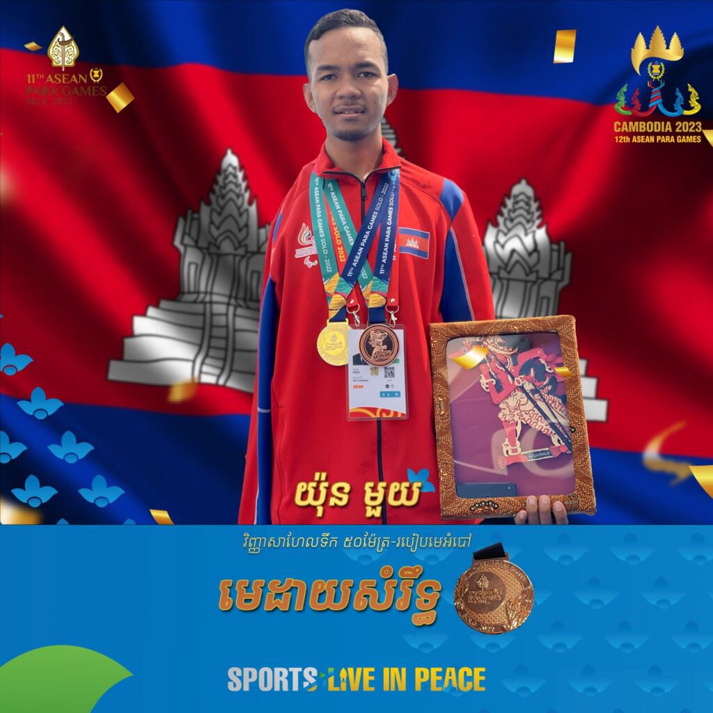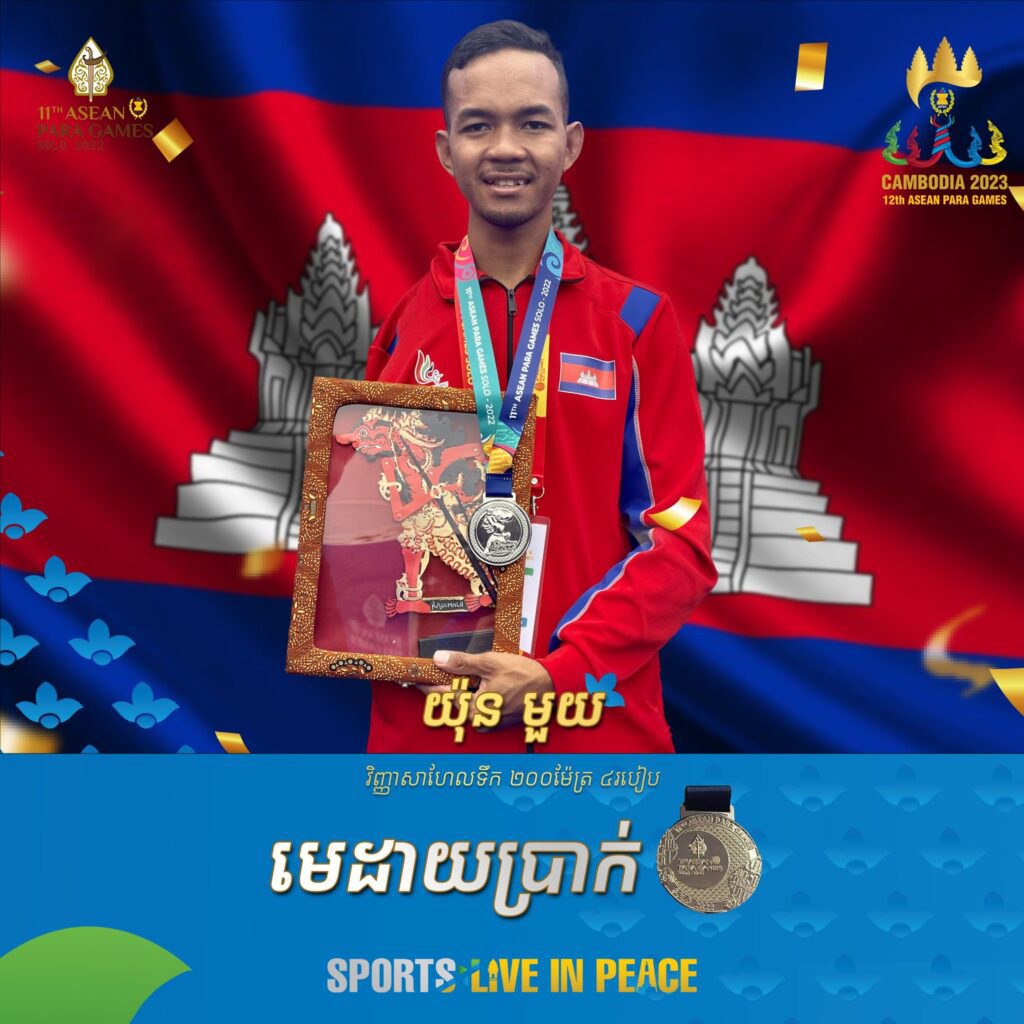 ភ្នំពេញ៖កីឡាករពិការភាពយ៉ុនមួយបានចំណាយពេលស្ទើរតែ៥ឆ្នាំក្នុងការលេងកីឡាតែទីបំផុតគេសម្រេចនូវមហិច្ឆតាររប់ខ្លួនដោយដណ្ដើមបានមេដាយប្រាក់១គ្រឿងនិងសំរិទ្ធ១គ្រឿងពីព្រឹត្តិការណ៍អាស៊ានប៉ារ៉ាហ្គេមលើកទី១១នៅទីក្រុងសូឡូប្រទេសឥណ្ឌូនេស៊ីដែលទើបតែបញ្ចប់ទៅនាពេលថ្មីៗនេះ ។
