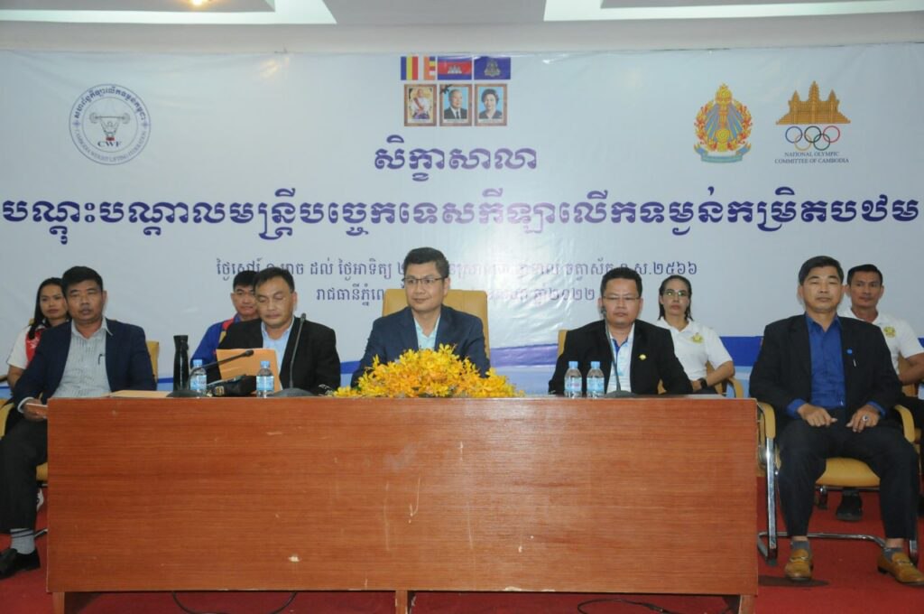ភ្នំពេញ៖ស្តីពីការវគ្គបណ្តុះបណ្តាលមន្ត្រីបច្ចេកទេសកីឡាលើកទម្ងន់កម្រិតបឋមត្រូវបានបញ្ចប់នាថ្ងៃទី១៤សីហានៅទីស្នាក់ការគណៈកម្មាធិការជាតិអូឡាំពិកកម្ពុជា។