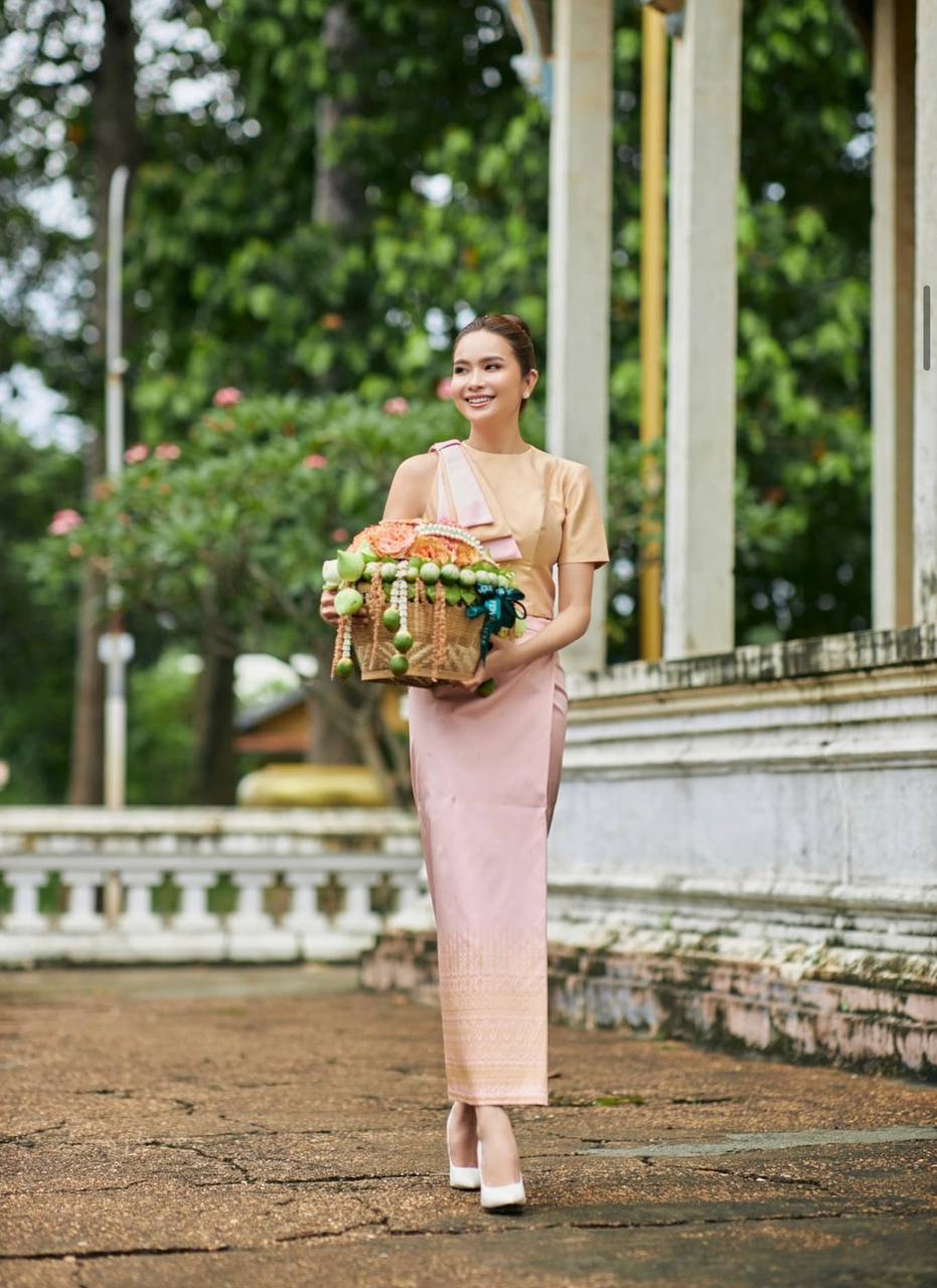 ពិតណាស់រូបថតដែលកំពុងតែទទួលបាន ការចាប់អារម្មណ៍របស់តារាសម្តែងខ្មែររូបនេះបានបង្ហាញពីការតែងខ្លួននៅក្នុងឈុតសម្លៀកបំពាក់បែបប្រពីណីខ្មែរ រួចដៃមានកាន់ផ្កាឈូក និងចានស្រាក់យកចង្ហាន់ទៅវត្តថ្វាយព្រះសង្ឃមើលទៅពិតជាសមសួន និងស្រស់ស្អាតខ្លាំងមែនទែន ។