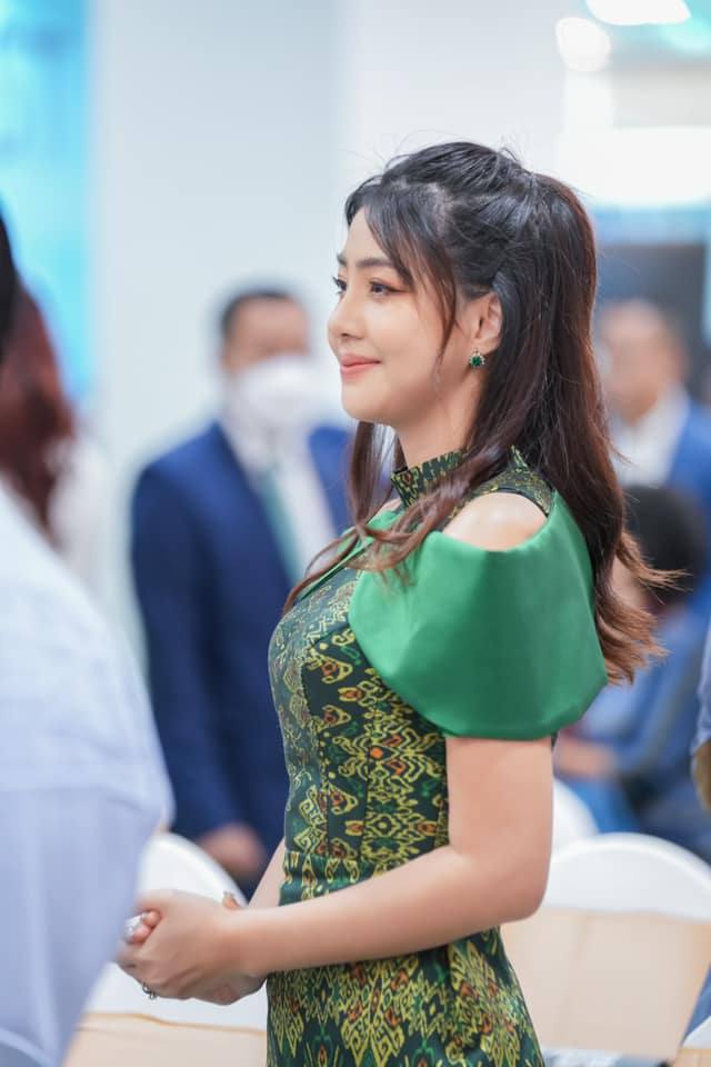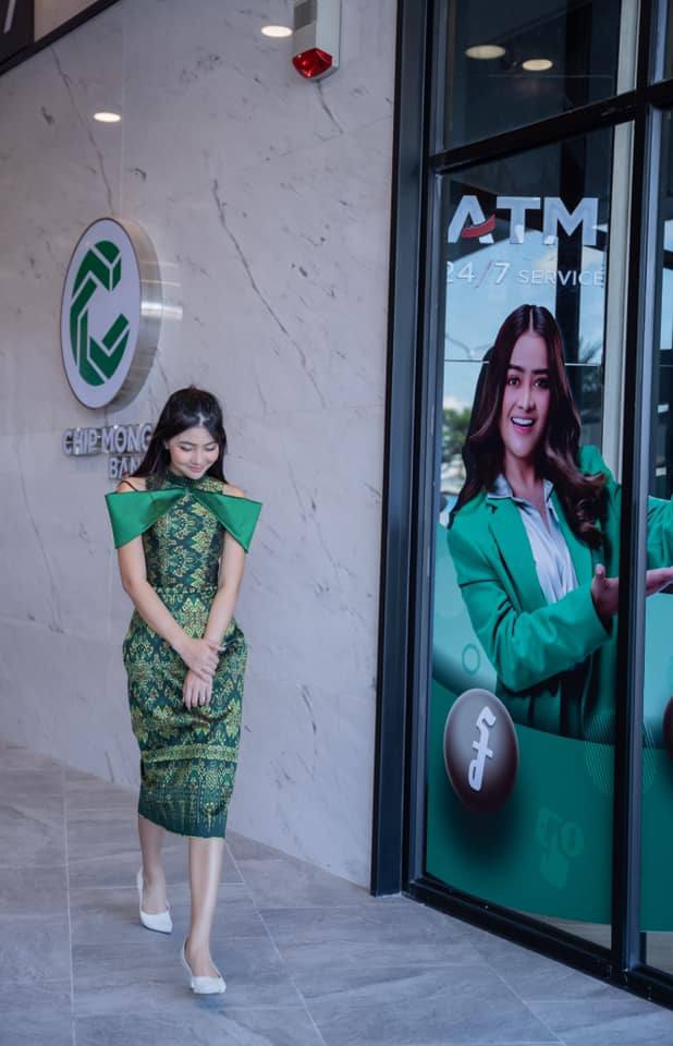 កញ្ញា ស៊ីន យូប៊ីន អតីតតារាឯក បង្ហាញសម្រស់ដ៏ផូរផង់ របស់ខ្លួនយ៉ាងជឿជាក់ ក្នុងថ្ងៃពិធីសម្ពោធ ដាក់ឲ្យប្រើប្រាស់ធនាគារមួយក្នុងរាជធានីភ្នំពេញ