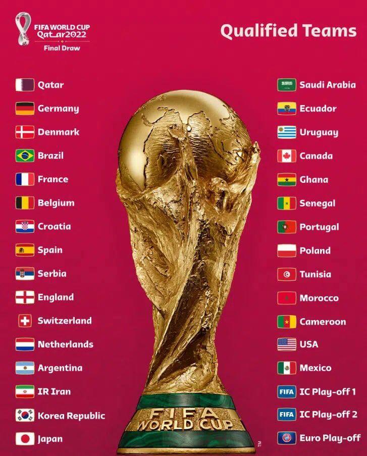 ភ្នំពេញ ៖ ការប្រកួតដណ្តើមពានរង្វាន់បាល់ទាត់ពិភពលោក (World Cup) ដែលរៀបចំឡើងរាល់៤ឆ្នាំម្តងបាន ចាប់តាំងពីរាត្រីថ្ងៃទី២០ វិច្ឆិកា ដោយធ្វើការប្រកួតជម្រុះតាមពូលទាំង៦ ហើយក្នុង១ពូលមាន៤ក្រុម។