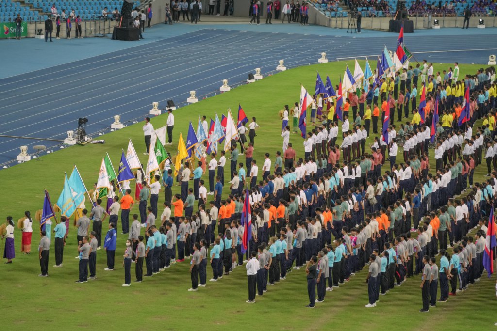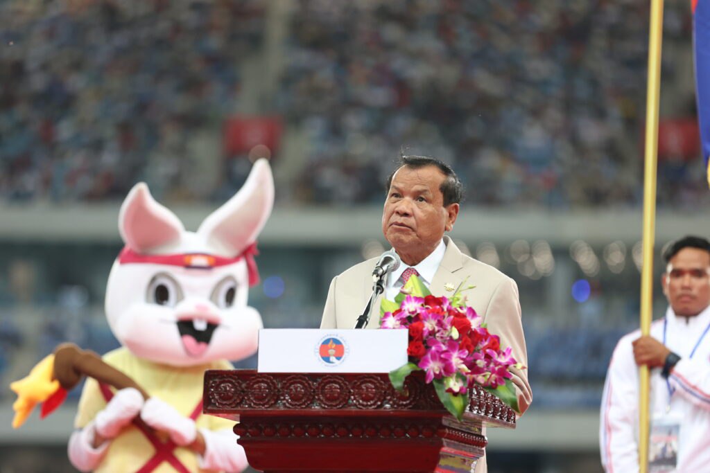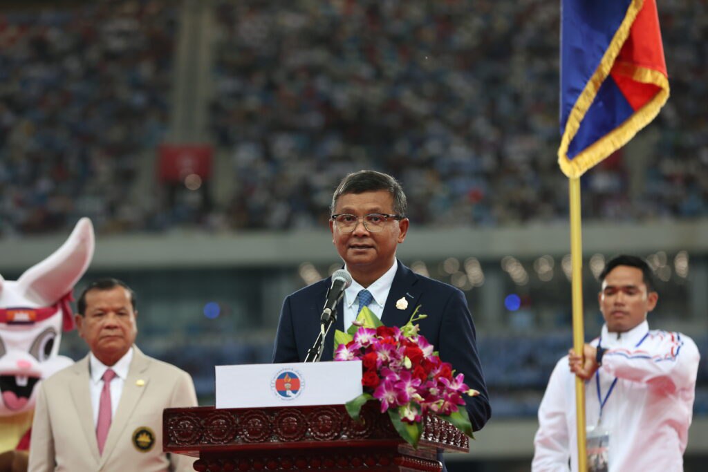ភ្នំពេញ ៖ លោកបណ្ឌិតសភាចារ្យ ហង់ជួន ណារ៉ុន រដ្ឋមន្ត្រីក្រសួងអប់រំ យុវជន និងកីឡា និងជាប្រធានរៀបចំការប្រកួតកីឡាជាតិ លើកទី៣ និងកីឡាជនពិការជាតិ លើកទី១ មានប្រសាសន៍ក្នុងពិធីបើកជាផ្លូវការនៃកីឡាជាតិ លើកទី៣ និងកីឡាជនពិការលើកទី១ ក្រោមអធិបតីភាពដ៏ខ្ពង់ខ្ពស់បំផុតរបស់សម្ដេចអគ្គមហាសេនាបតីតេជោ ហ៊ុន សែន នាយករដ្ឋមន្ត្រីនៃព្រះរាជាណាចក្រកម្ពុជា នាល្ងាចថ្ងៃចន្ទ ទី២១ ខែវិច្ឆិកា ឆ្នាំ២០២២ នៅពហុកីឡដ្ឋានជាតិមរតកតេជោ។
