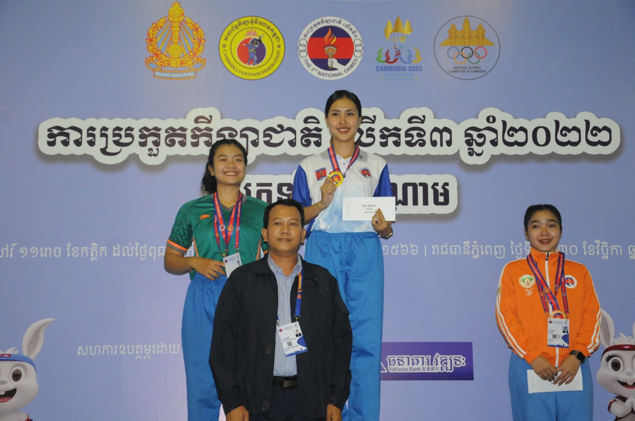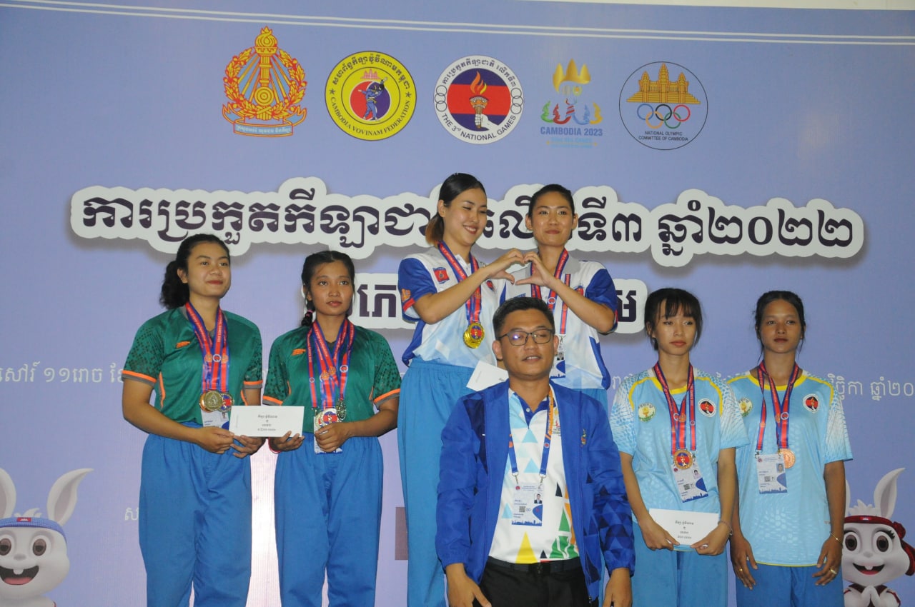 ភ្នំពេញ៖ក្នុងព្រឹត្តិការណ៍ប្រកួតកីឡាជាតិលើកទី៣នេះលើប្រភេទកីឡាវ៉ូវីណាមក្រសួងការពារជាតិដណ្តើមមេដាយដោយឈរនៅចំណាត់ថ្នាក់កំពូលតារាង។