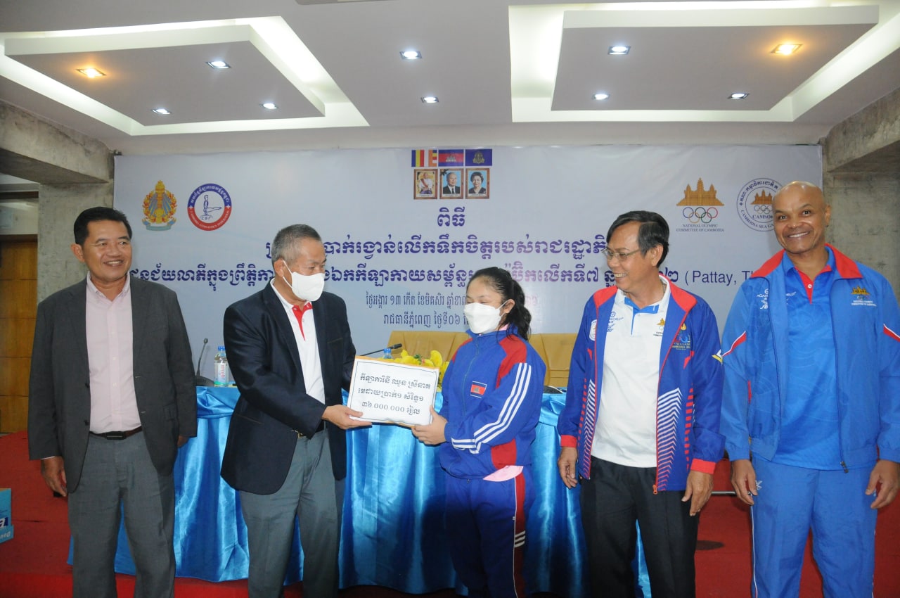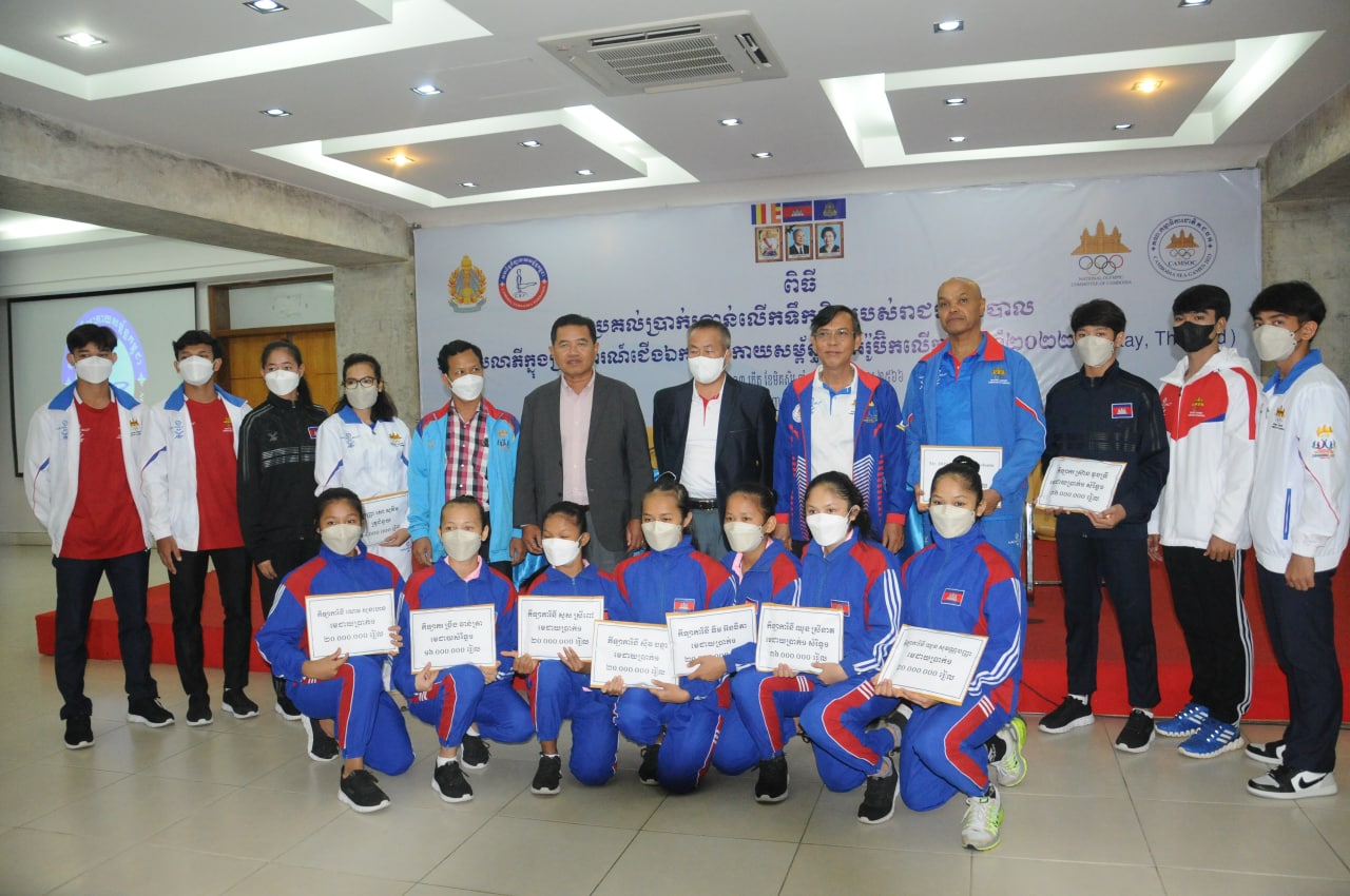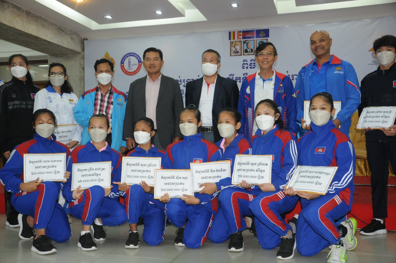 ភ្នំពេញ៖នៅថ្ងៃទី៦ធ្នូនេះសម្រាប់កីឡាកាយសម្ព័ន្ធកម្ពុជាដែលចូលរួមប្រកួតក្នុងព្រឹត្តិការណ៍ជើងឯកអាស៊ីលើកទី៧ “ Aerobic Gymnastics Asian Championship 2022 ”នៅប៉ាតាយ៉ាបានទទួលប្រាក់រង្វាន់លើកទឹកចិត្តពីរាជរដ្ឋាភិបាល។