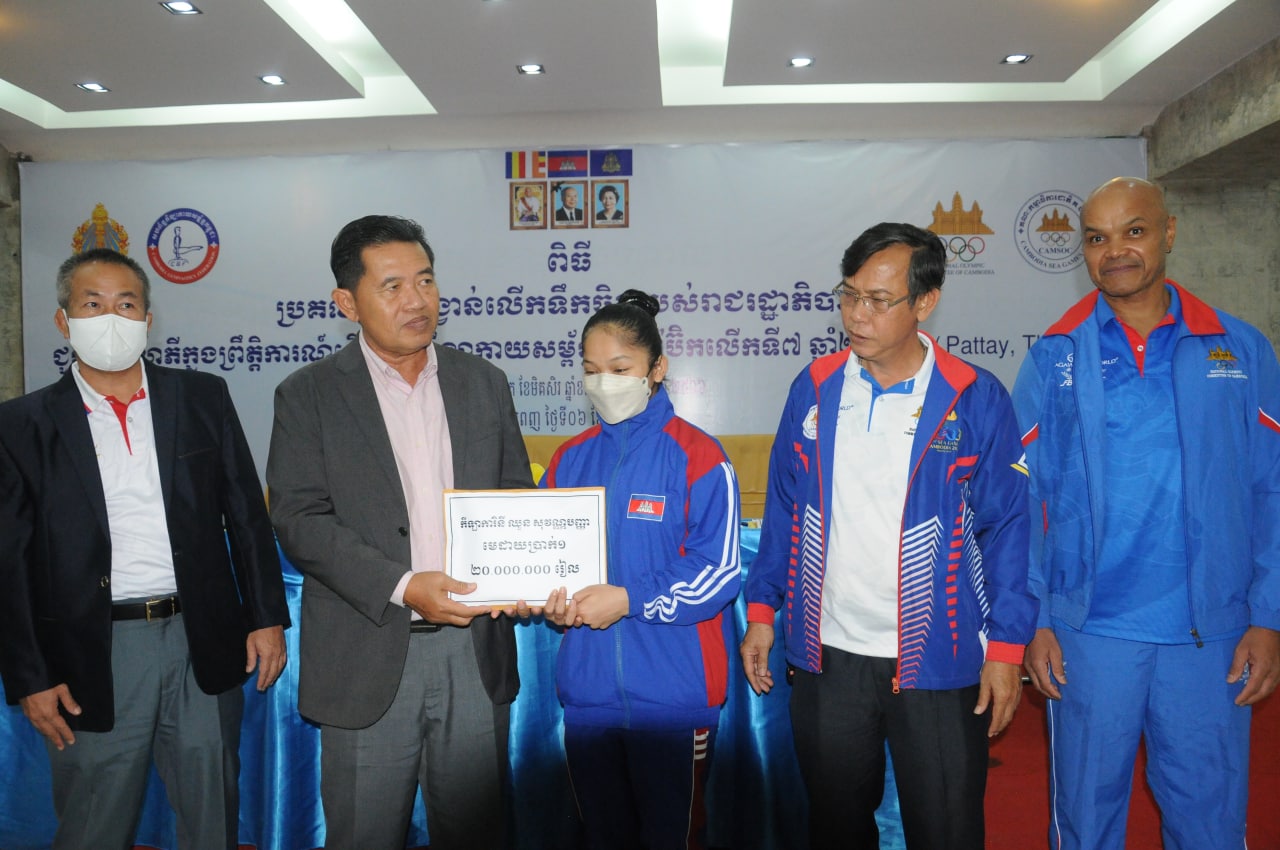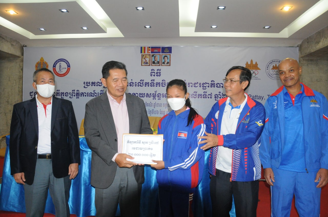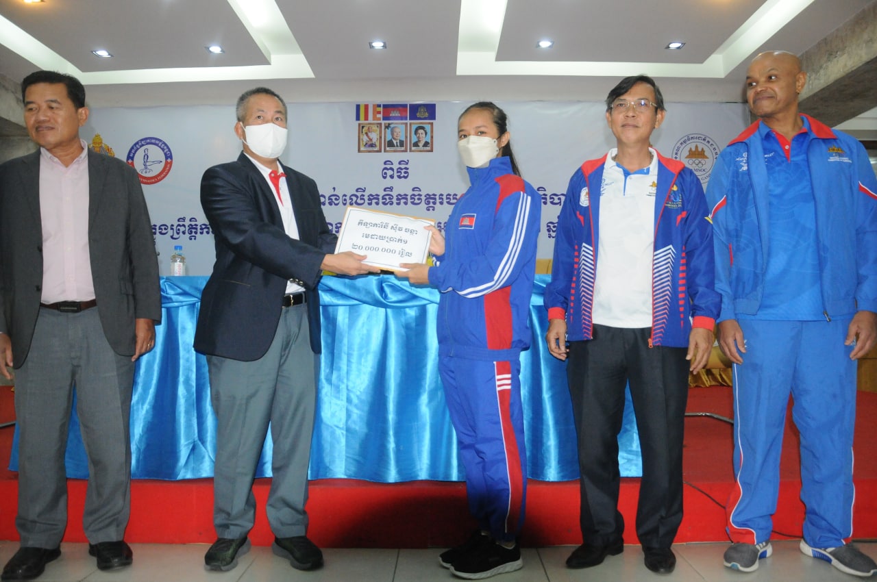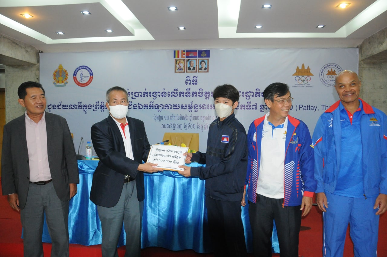 ភ្នំពេញ៖នៅថ្ងៃទី៦ធ្នូនេះសម្រាប់កីឡាកាយសម្ព័ន្ធកម្ពុជាដែលចូលរួមប្រកួតក្នុងព្រឹត្តិការណ៍ជើងឯកអាស៊ីលើកទី៧ “ Aerobic Gymnastics Asian Championship 2022 ”នៅប៉ាតាយ៉ាបានទទួលប្រាក់រង្វាន់លើកទឹកចិត្តពីរាជរដ្ឋាភិបាល។