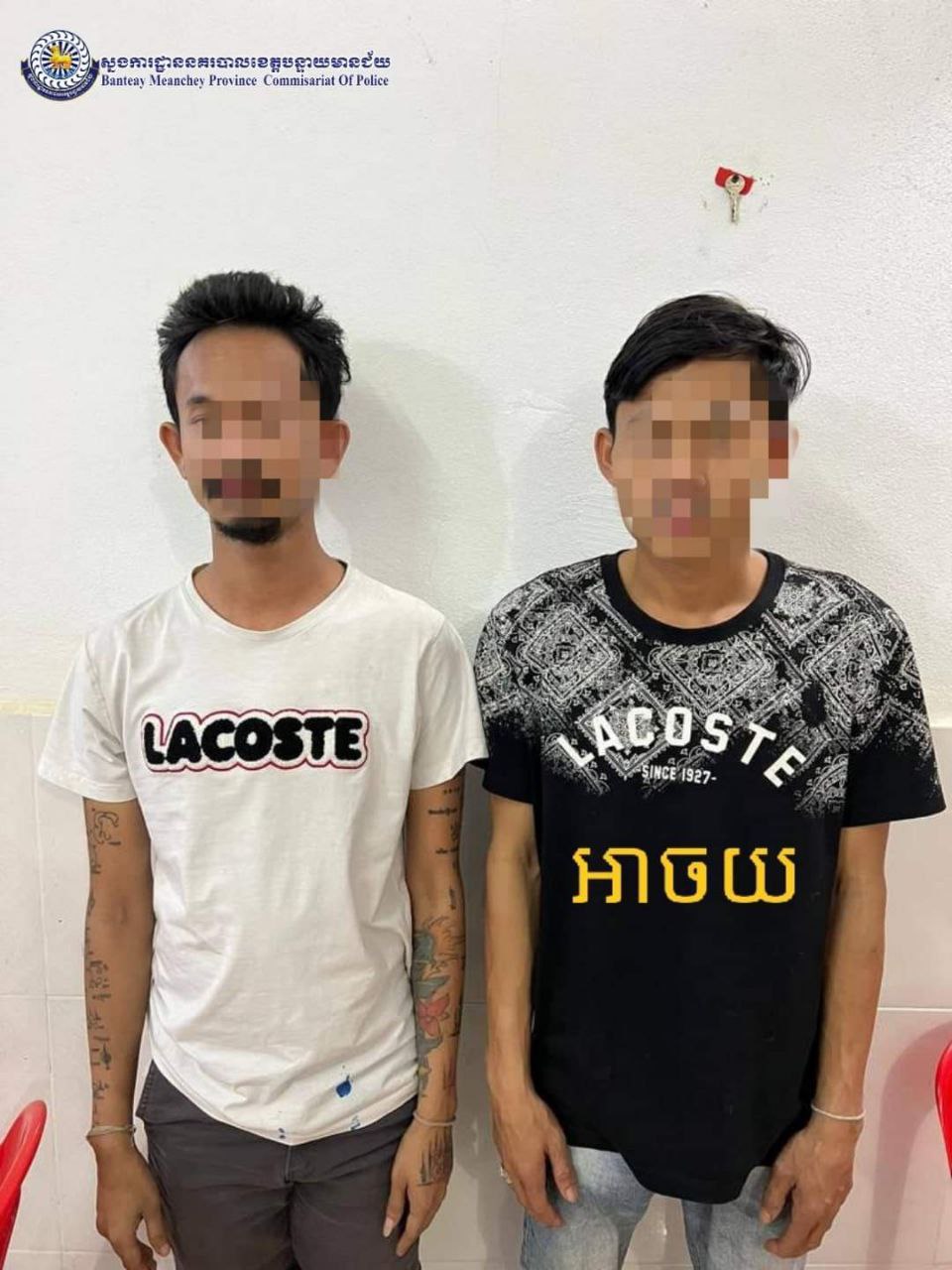 លោកវរសេនីយ៍ឯក សៅ សារឿន អធិការនគរបាលក្រុងប៉ោយប៉ែត បានឲ្យដឹងថាជនសង្ស័យចំនួន ០២នាក់ ១-ឈ្មោះ ហូ គឹមហៀង ហៅចយ ភេទប្រុស អាយុ ២៣ឆ្នាំ ជនជាតិខ្មែរ និង ២-ឈ្មោះ កែវ បញ្ញា ភេទប្រុស អាយុ២៨ឆ្នាំជនជាតិខ្មែរ មានទីលំនៅភូមិសមគ្គីមានជ័យ សង្កាត់អូរជ្រៅ ក្រុងប៉ោយប៉ែត យកមកសួរនាំនៅអធិការដ្ឋាននគរបាលក្រុង។ ក្រោយសួនាំជនសង្ស័យទាំង២នាក់ ត្រូវបានប្រគល់ជូនទៅខាងនគរបាលខេត្តបាត់ដំបង មកទទួលយកទៅចាត់ការបន្តតាមនីតវិធី។