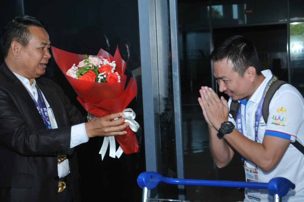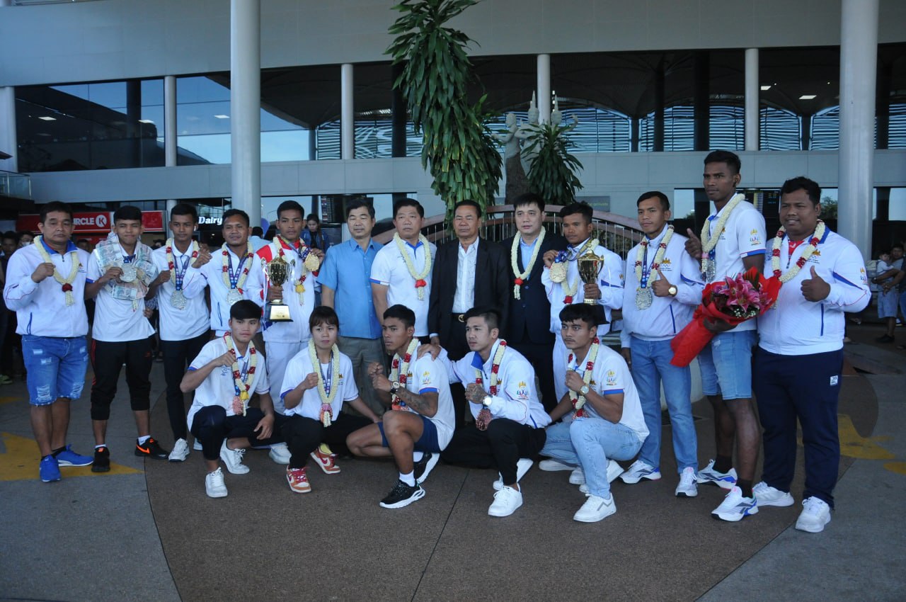លោកឧត្តមសេនីយ៍ឯកតែមម៉ឺនអគ្គលេខាធិការរងនៃគណៈកម្មាធិការជាតិអូឡាំពិកកម្ពុជា និងជាប្រធានកិត្តិយស សហព័ន្ធកីឡាឃីកបុកស៊ីង កម្ពុជា និងលោក សំ សុខយី អនុប្រធានមជ្ឈមណ្ឌលជាតិបានទៅស្វាគមន៍ចំពោះការវិលត្រឡប់នេះដល់ចំណតអាកាសយានដ្ឋានអន្តរជាតិភ្នំពេញ៕