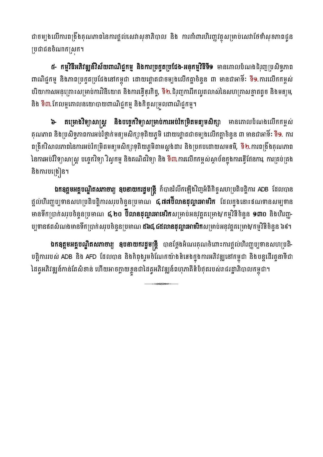 ចុះហត្ថលេខាលើកិច្ចព្រមព្រៀង ហិរញ្ញប្បទានសហប្រតិបត្តិការសម្រាប់គម្រោង/កម្មវិធីចំនួន ៦ ដែលមានទឹកប្រាក់សរុបចំនួន ៣៨១,៤៥លានដុល្លារ និងហិរញ្ញប្បទានជំនួយបច្ចេកទេសចំនួន ០១ ដែលមានទឹកប្រាក់ចំនួន ១,៧លានដុលា្លរ
