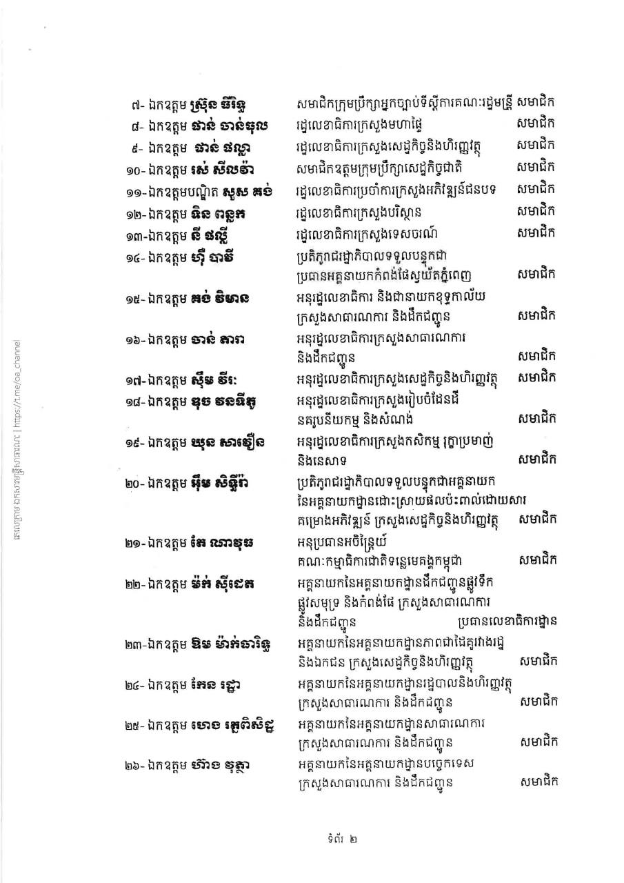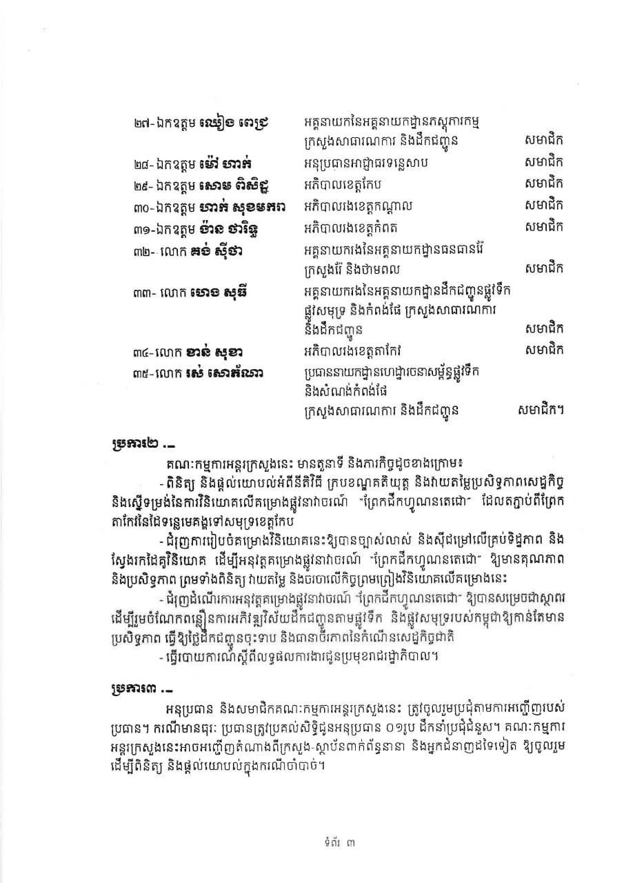 គណៈកម្មការអន្តរក្រសួង ដឹកនាំដោយ លោកទេសរដ្ឋមន្ត្រី ស៊ុន ចាន់ថុល រដ្ឋមន្ត្រីក្រសួងសាធារណការ និងដឹកជញ្ជូន ដោយមានសមាសភាពសរុប ៣៥ រូប។
