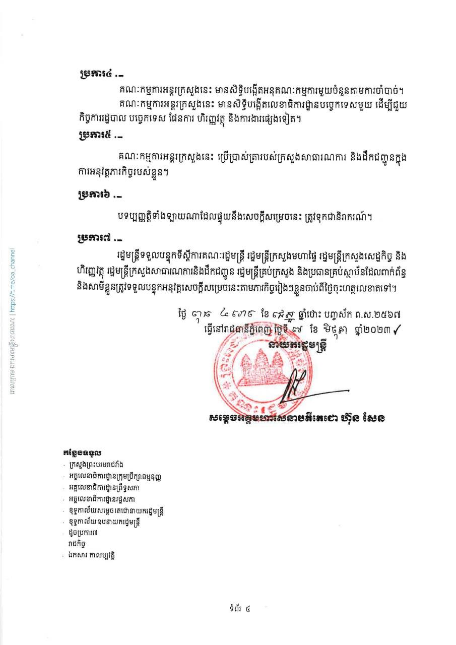 សម្តេចតេជោ ហ៊ុន សែន ចេញសេចក្ដីសម្រេចបង្កើតគណៈកម្មការអន្តរក្រសួង ដើម្បីដំណើរការអនុវត្តនាវាចរណ៍ «ព្រែកជីកហ្វូណនតេជោ»