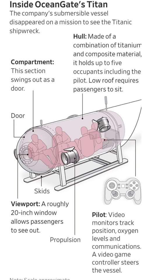 នាវាច្រមុជទឹកមានឈ្មោះ Titan ដែលបាត់នោះត្រូវបានគេកំណត់អត្តសញ្ញាណមនុស្សដូចជា Stockton Rush ដែលជានាយកប្រតិបត្តិនៃ OceanGate Expeditions ដែលជាក្រុមហ៊ុននៅពីក្រោយបេសកកម្ម។