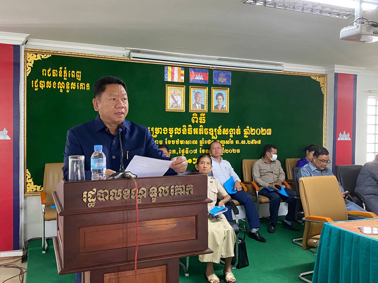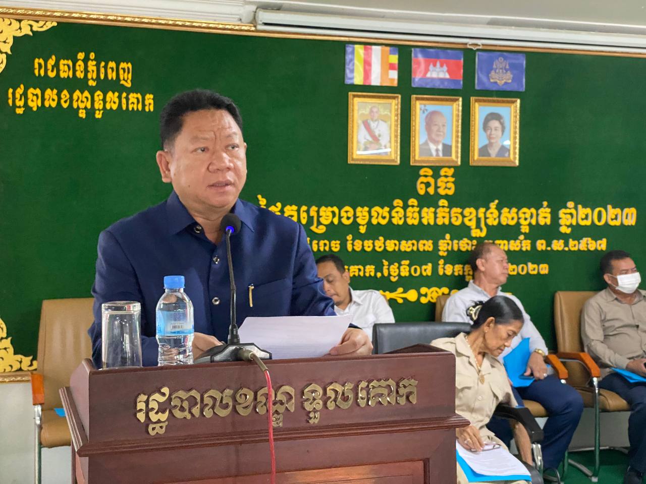 លោក ជា ពិសី អភិបាលខណ្ឌទួលគោក បានមានប្រសាសន៍លើកឡើងថា៖ ការដេញថ្លៃគម្រោងមូលនិធិអភិវឌ្ឍន៍សង្កាត់ ឆ្នាំ២០២៣នេះ សម្រាប់ទាំង១០សង្កាត់ របស់ខណ្ឌទួលគោកមានចំនួន១៥គម្រោង តម្លៃប៉ាន់ប្រមាណជាង១៩២៨លានរៀល ក្នុងនោះរួមមាន៖ សង្កាត់ផ្សារដេប៉ូទី១ មាន១គម្រោង ដាក់លូប្រវែង៤២៣ម៉ែត្រ តម្លៃប្រមាណ១៥៨លានរៀល ។ សង្កាត់ផ្សារដេប៉ូទី២ មាន១គម្រោង ដាក់លូប្រវែង៤៤៥ម៉ែត្រតម្លៃប្រមាណ១៦៤លានរៀល ។ សង្កាត់ផ្សារដេប៉ូទី៣ មាន២គម្រោង គឺគម្រោងជួលជុលផ្លូវ១៦៣ម៉ែត្រ និងស្តារលូ២៦៩ម៉ែត្រ តម្លៃប្រមាណ១៥៤លានរៀល។ សង្កាត់ទឹកល្អក់ទី១ មាន២គម្រោង គឺគម្រោងរៀបការ៉ូឡា និងដាក់លូប្រវែង១៣៦ម៉ែត្រ តម្លៃប្រមាណ១៨១លានរៀល។ សង្កាត់ទឹកល្អក់ទី២ មាន១គម្រោង ដាក់លូប្រវែង៥៤៩ម៉ែត្រ តម្លៃប្រមាណ១៧៧លានរៀល។សង្កាត់ទឹកល្អក់ទី៣ មាន១គម្រោង ដាក់លូប្រវែង៦៦២ម៉ែត្រ តម្លៃប្រមាណ២២៩លានរៀល។ សង្កាត់បឹងកក់ទី១មាន១គម្រោង ដាក់លូប្រវែង៥៦២ម៉ែត្រ តម្លៃប្រមាណ១៨៨លានរៀល។ សង្កាត់បឹងកក់ទី២ មាន៣ម្រោង ជួសជុលផ្លូវបេតុងប្រវែង៦០ម៉ែត្រដាក់លូប្រវែង៥០៨ម៉ែត្រ និងស្តារលូប្រវែង៦០០ម៉ែត្រតម្លៃប្រមាណ២៤១លានរៀល។ សង្កាត់ផ្សារដើមគរមានមួយគម្រោង ជួសជុលផ្លូវ៩២ម៉ែត្រ តម្លៃប្រមាណ១៨១លានរៀល ។សង្កាត់បឹងសាឡាង មាន២គ្រោង ជួសជុលផ្លូវបេតុងប្រវែង៥៩ម៉ែត្រនិងដាក់លូប្រវែង៦១៤ម៉ែត្រ តម្លៃប្រមាណ២៤៣លានរៀល ។ សរុបទាំង១០សង្កាត់ ក្នុងចំនួន១៥គម្រោងនេះ មានទឺកប្រាក់ប៉ាន់ស្មានប្រមាណជាង១៩២៨លានរៀល។