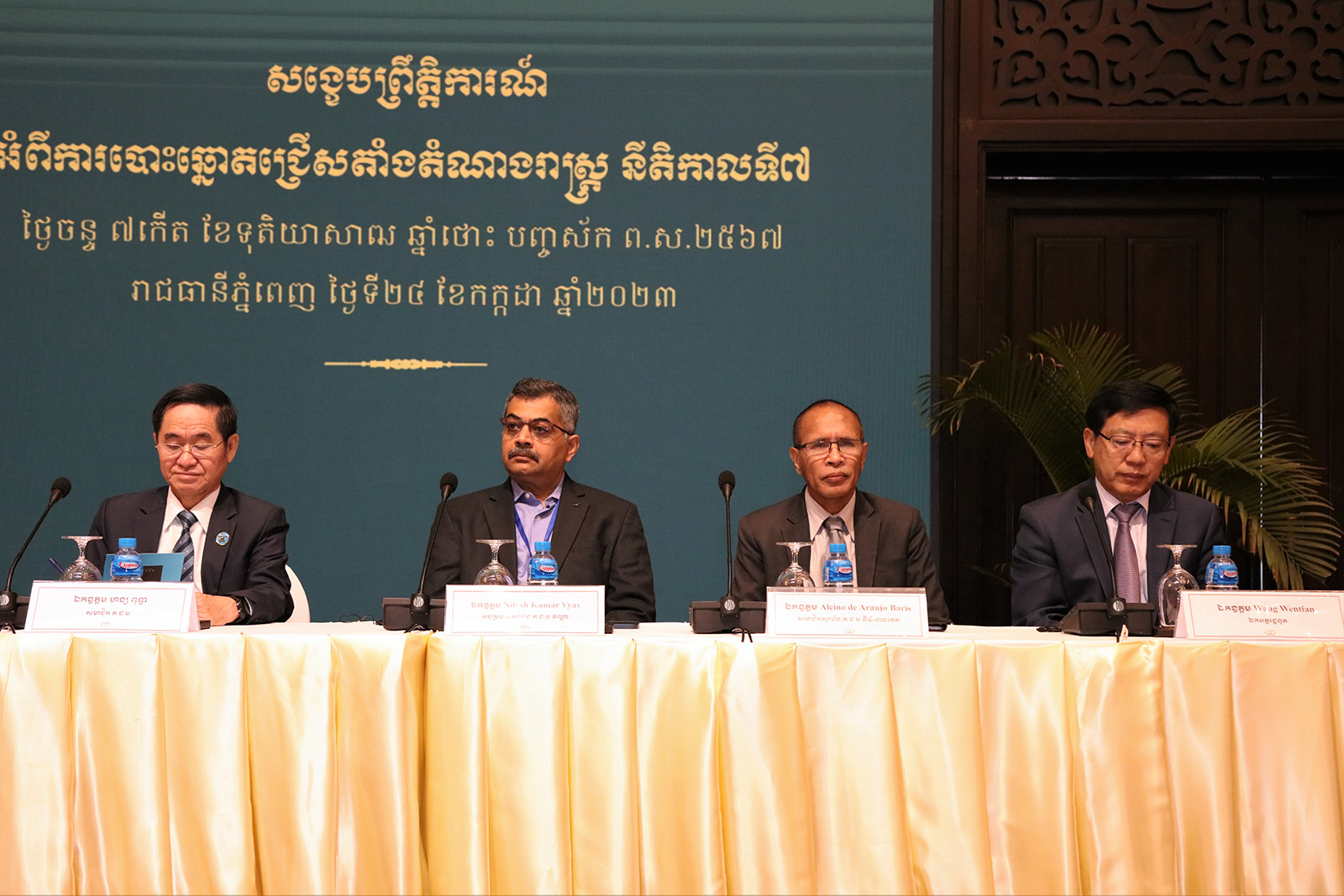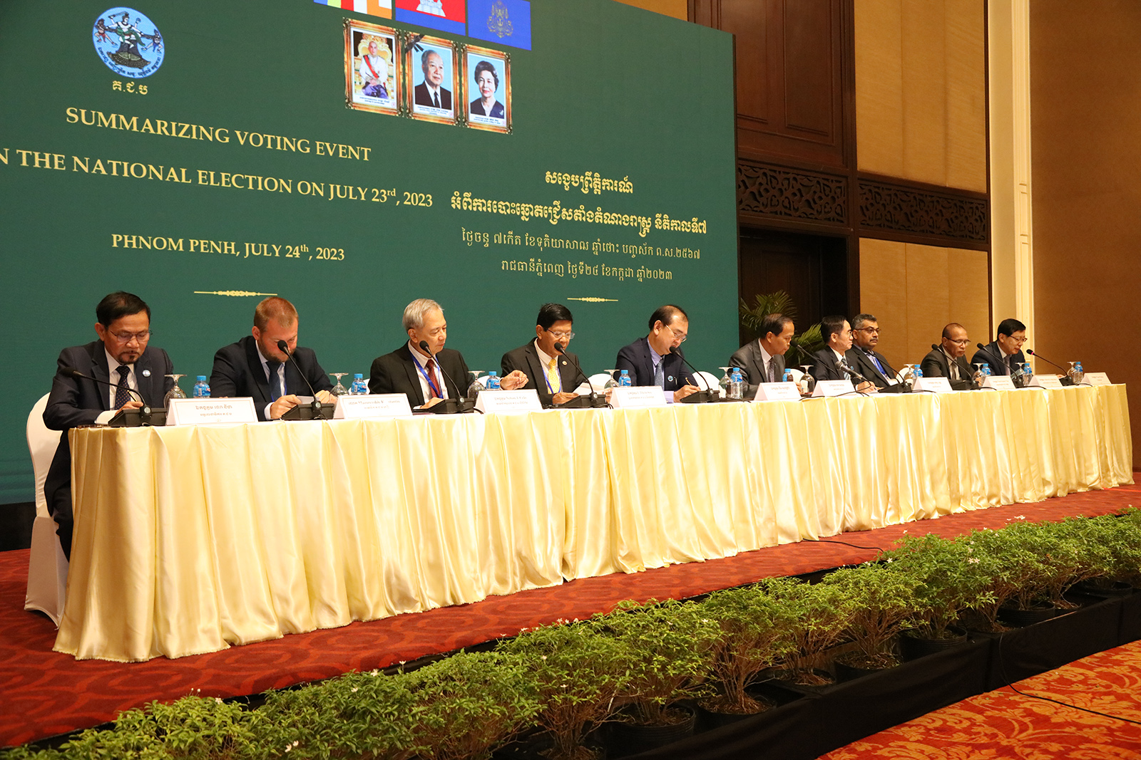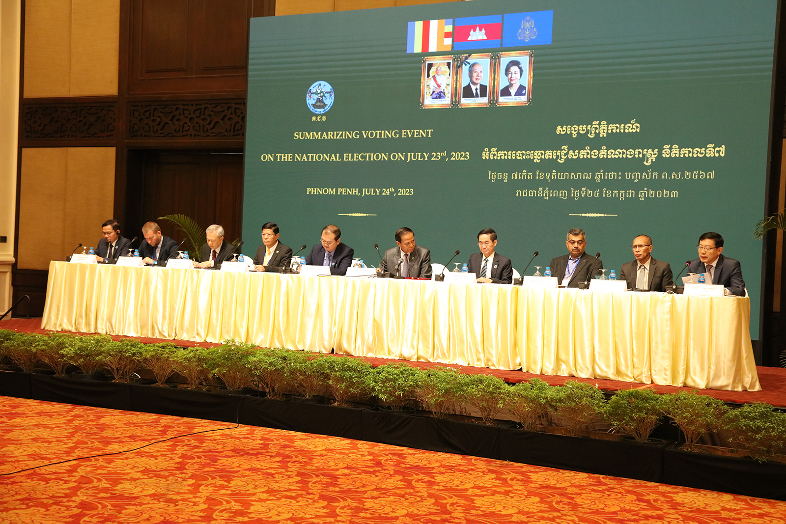 ជាកិច្ចចាប់ផ្តើម ឯកឧត្តម នុត សុខុម អនុប្រធាន គ.ជ.ប បានថ្លែងអំណរគុណចំពោះ អ្នកសង្កេតការណ៍បោះឆ្នោតអន្តរជាតិទាំងអស់ ហើយមានចំណាប់អារម្មណ៍ និងបានសង្ខេប ព្រឹត្តិការណ៍នៃការបោះឆ្នោតជ្រើសតាំងតំណាងរាស្ត្រ នីតិកាលទី៧ នៅថ្ងៃអាទិត្យ ទី២៣ ខែកក្កដា ឆ្នាំ២០២៣ ថា ការិយាល័យបោះឆ្នោតនៅទូទាំងប្រទេស ដែលមានចំនួន ២៣.៧៨៩ការិយាល័យ បានបើកដំណើរការទាំងអស់ ហើយអ្នកដែលបានចេញទៅបោះឆ្នោតសរុបទូទាំងប្រទេស មានចំនួន ៨.២១៣.២៦០នាក់ ស្មើនឹង ៨៤.៥៨% (តួលេខបណ្តោះអាសន្ន) នៃអ្នកមានឈ្មោះក្នុងបញ្ជីបោះឆ្នោត ចំនួន ៩.៧១០.៦៥៥នាក់។ ឯកឧត្តមបានវាយតម្លៃថា ជាទូទៅការបោះឆ្នោតប្រកបដោយ សេរី យុត្តិធម៌ ស្ថិតក្នុងបរិយាកាសស្ងប់ស្ងាត់ សន្តិភាព គ្មានអំពើហិង្សា និងប្រព្រឹត្តទៅដោយរលូន។
