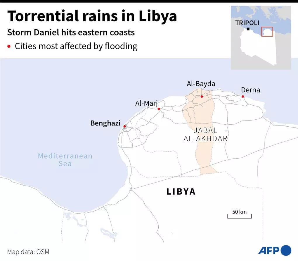 អ្នកនាំពាក្យកងទ័ពជាតិលីប៊ីដែលកំពុងគ្រប់គ្រងភាគខាងកើតនៃប្រទេស លោក អះម៉ាត់ មីស្មារី (Ahmed Mismari) បានឱ្យដឹងក្នុងសន្និសីទសារព័ត៌មានផ្សាយ តាមទូរទស្សន៍នៅថ្ងៃចន្ទសប្ដាហ៍នេះ ថាគ្រោះមហន្តរាយបានកើតឡើង បន្ទាប់ពីការបាក់ទំនប់ទឹកជាច្រើនកន្លែងក្នុងទីក្រុងដឺណា ហើយមនុស្សកំពុងបាត់ខ្លួនមាន ប្រហែលពី៥,០០០ ទៅ៦,០០០នាក់។ ចំណែក មន្ត្រីលីប៊ីម្នាក់នៃរដ្ឋាភិបាលភាគខាងកើត លោក អូសាម៉ា ហាម៉ាត់ (Osama Hamad) ក៏បាននិយាយដែរថា ចំនួនអ្នកស្លាប់គឺមានច្រើនជាង ២,០០០នាក់ឯណោះ៕