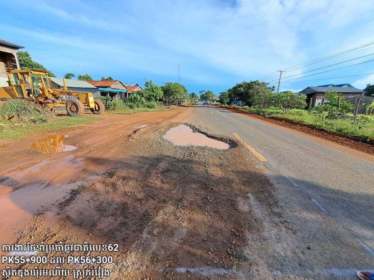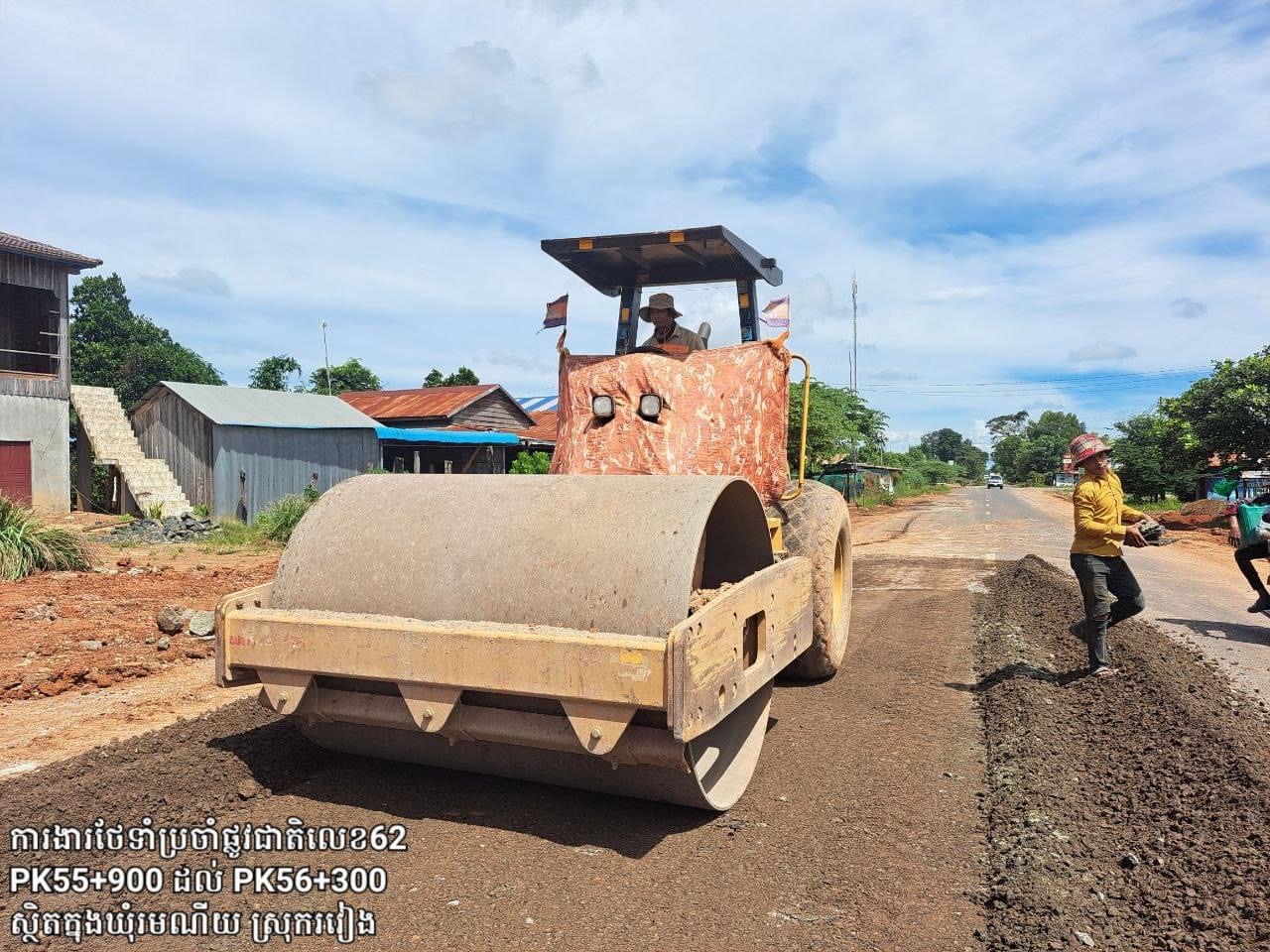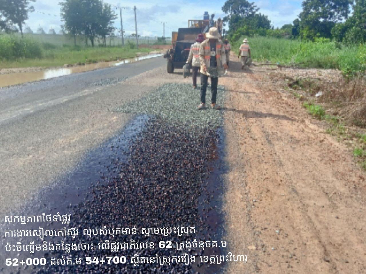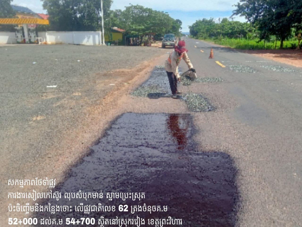 ព្រះវិហារ៖ ដើម្បីរក្សាបានគុណភាពផ្លូវថ្នល់ឱ្យមានភាពល្អប្រសើរ អាចប្រើប្រាស់បានយូរអង្វែង និងធ្វើចរាចរណ៍បានសុខសុវត្ថិភាព ក្រុមការងារបច្ចេកទេសនៃ មន្ទីរសាធារណការ និងដឹកជញ្ជូនខេត្តព្រះវិហារ បានជួសជុលថែទាំប្រចាំលើកំណាត់ផ្លូវជាតិលេខ ៦២ ចាប់ពី គ.ម៦៨+០០០ ភូមិភ្នំដែក ដល់ គ.ម៣៦+០០០ ព្រំប្រទល់(ព្រះវិហារ–កំពង់ធំ) ក្នុងស្រុករវៀង ខេត្តព្រះវិហារ ។