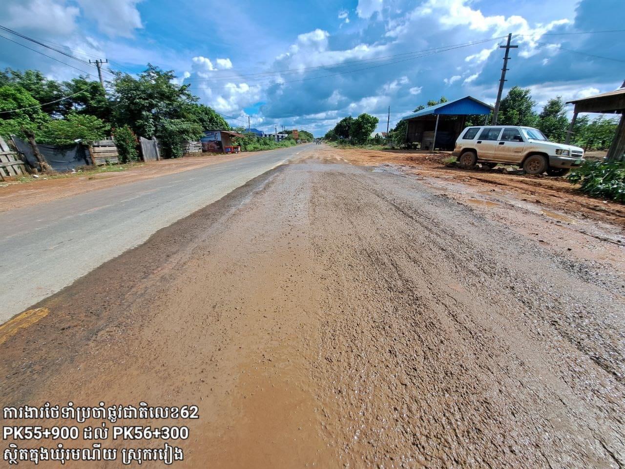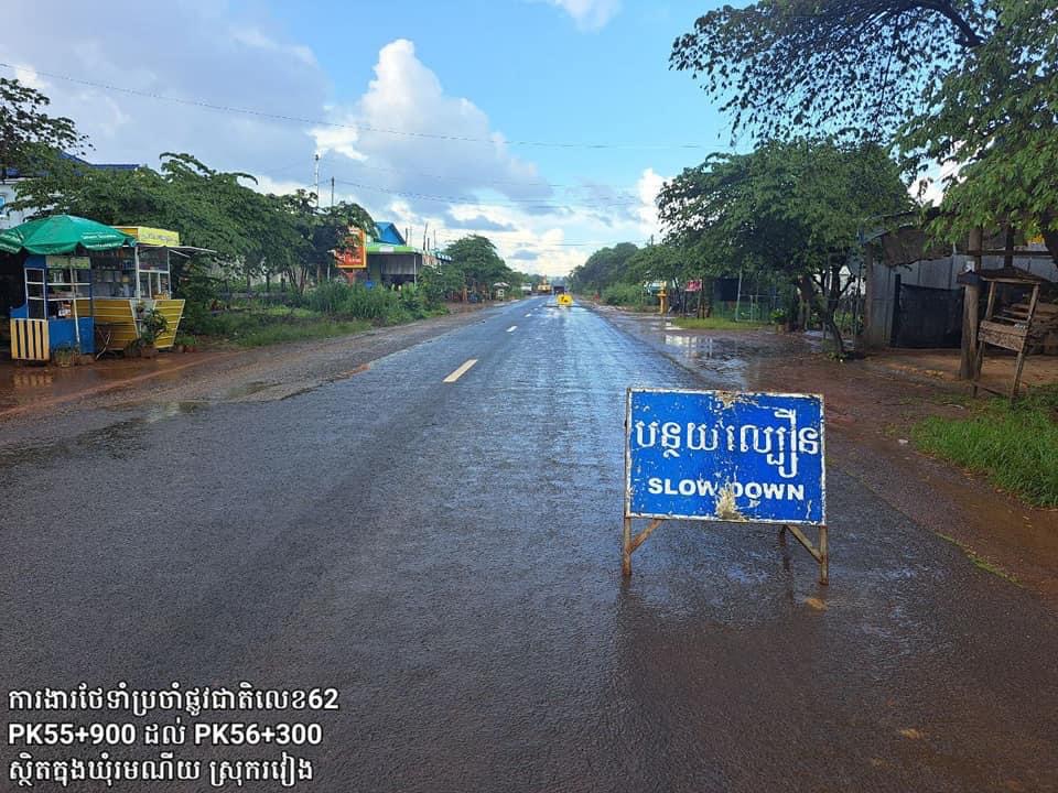 មន្ត្រីនៃមន្ទីរសាធារណការ និងដឹកជញ្ជូនខេត្តព្រះវិហារ បានអោយដឹងថា៖ កំណាត់ផ្លូវជាតិលេខ ៦២ ចាប់ពីគ.ម៦៨+០០០ ភូមិភ្នំដែក ដល់ គ.ម៣៦+០០០ ព្រំប្រទល់(ព្រះវិហារ–កំពង់ធំ) ក្នុងស្រុករវៀង ខេត្តព្រះវិហារ កំពុងយកចិត្តទុកដាក់ជួសជុលថែទាំប្រចាំ ដោយក្រុមការងារបច្ចេកទេសនៃ មន្ទីរសាធារណការ និងដឹកជញ្ជូនខេត្តព្រះវិហារ ដើម្បីរក្សាបានគុណភាពផ្លូវថ្នល់ឱ្យមានភាពល្អប្រសើរ អាចប្រើប្រាស់បានយូរអង្វែង និងធ្វើចរាចរណ៍បានសុខសុវត្ថិភាព។