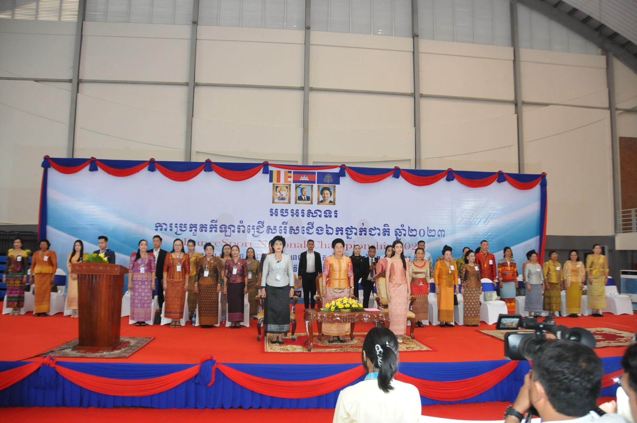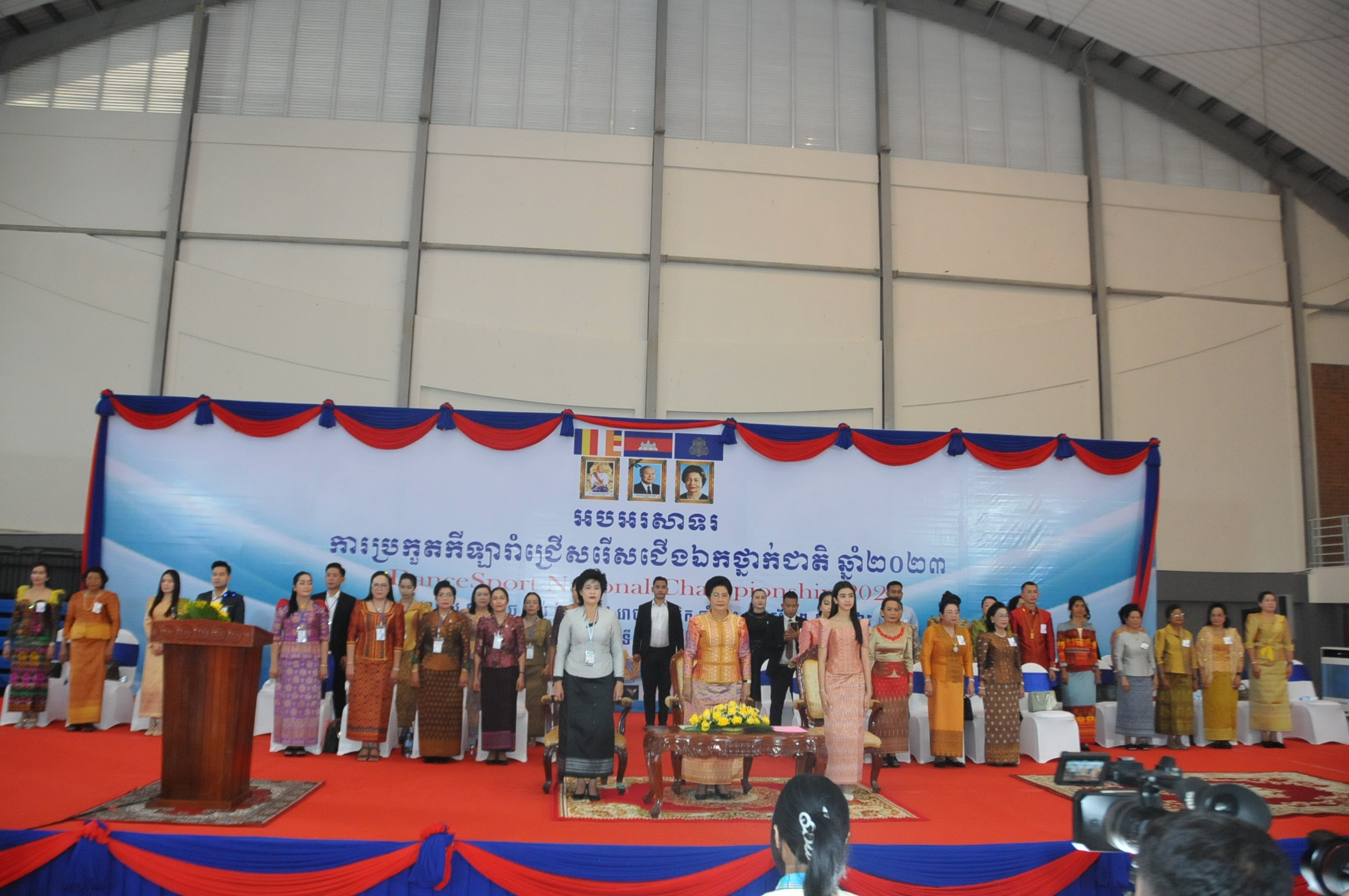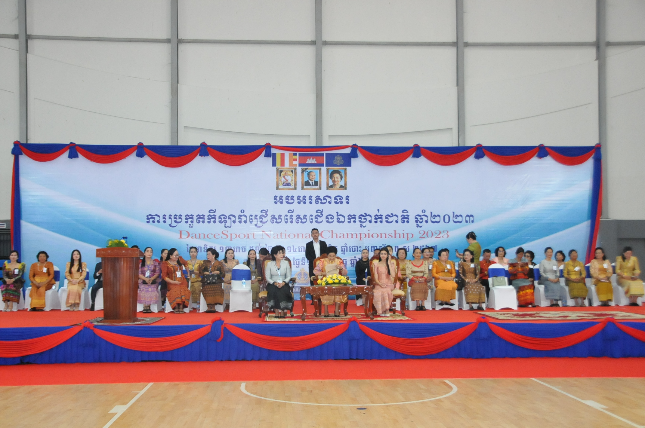ភ្នំពេញ ៖ លោកជំទាវឧកញ៉ា ហ៊ុន ស៊ីណាត អគ្គទីប្រឹក្សាផ្ទាល់សម្តេច ព្រះអភិសិរីសុគន្ធ មហាសង្ឃរាជគណធម្មយុត្តិកនិកាយនៃព្រះរាជាណាចក្រកម្ពុជា ព្រះនាងតូច ជេនណា នរោត្តម ជាទូតសុឆន្ទៈសហព័ន្ធកីឡារាំកម្ពុជា និងលោកស្រី ញ៉ូម មរកត រដ្ឋលេខាធិការក្រសួងកិច្ចការនារី និងជា ប្រធាន សហព័ន្ធកីឡារាំកម្ពុជានៅថ្ងៃទី ១១ ខែធ្នូ ឆ្នាំ២០២៣ បានអញ្ជើញជាកិត្តិយសក្នុងពិធីបើកការបកួតកីឡារាំ ជ្រើសរើសជើងឯកថ្នាក់ជាតិឆ្នាំ២០២៣ នៅដំបូលទូកនៃមជ្ឈមណ្ឌលជាតិហ្វឹកហ្វឺនកីឡា។