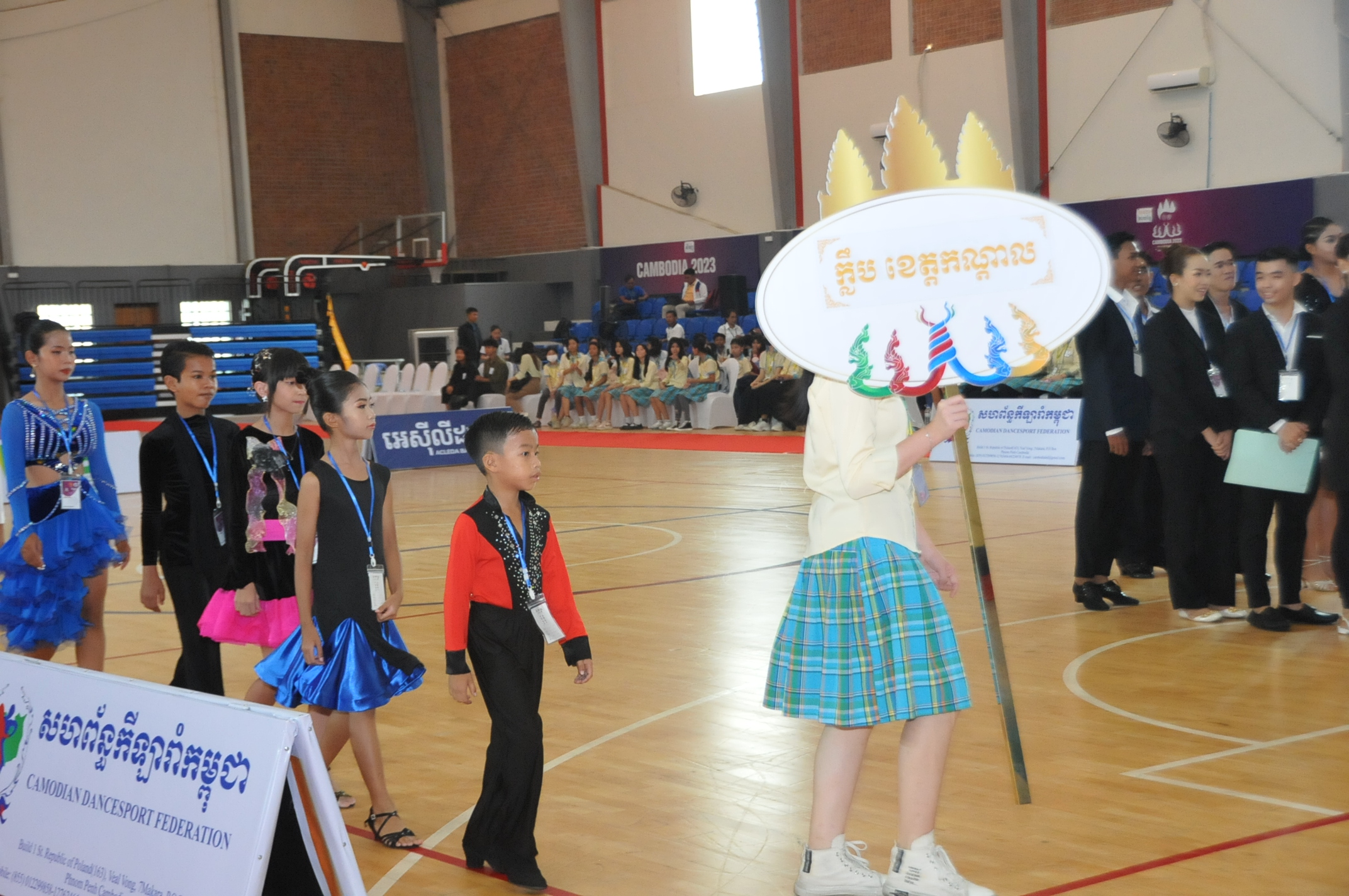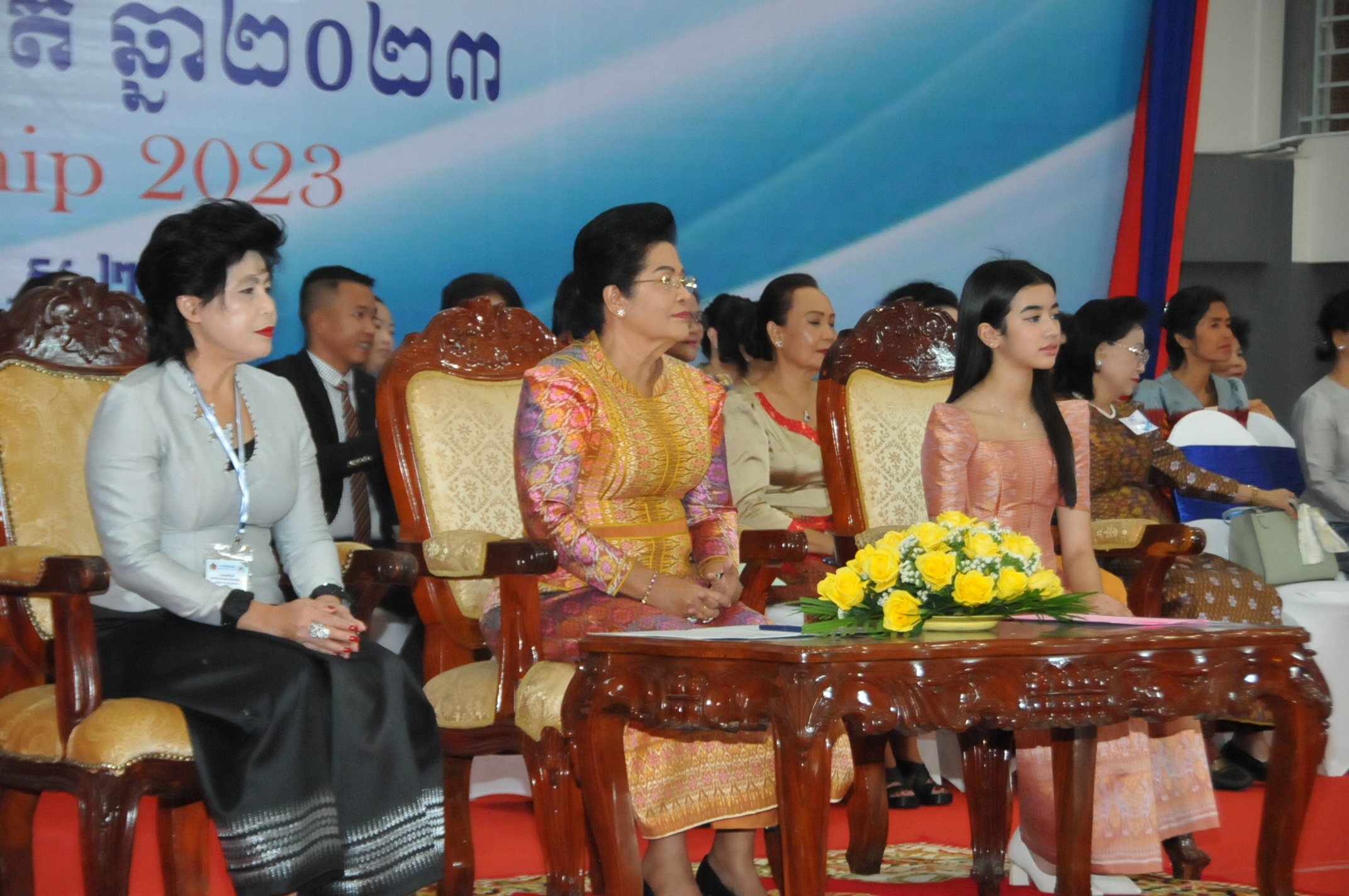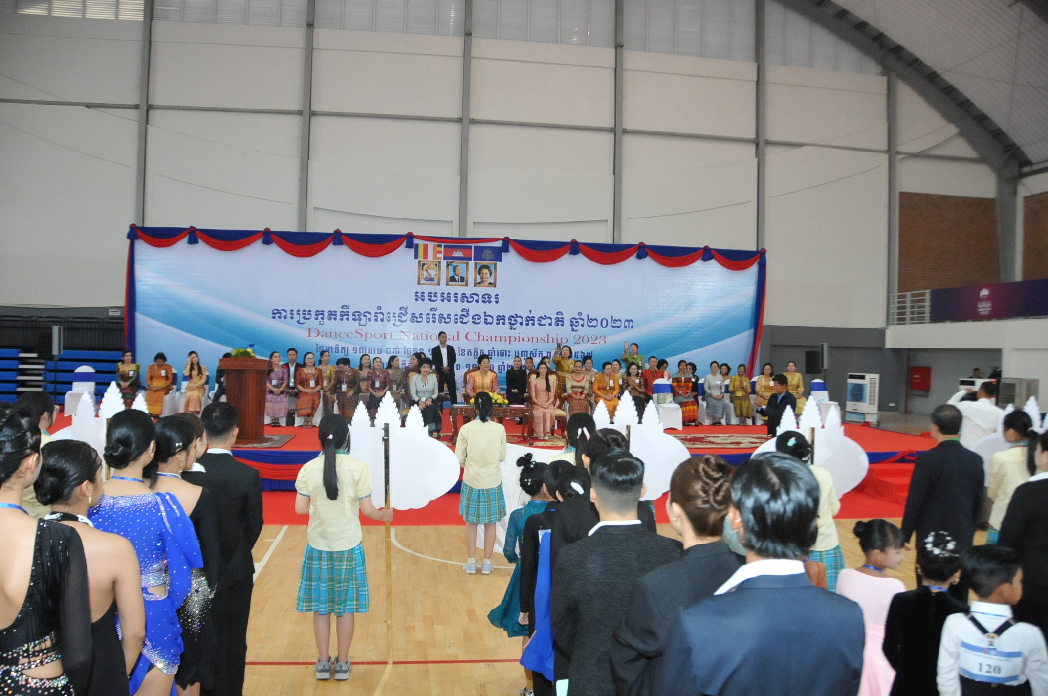 ភ្នំពេញ ៖ លោកជំទាវឧកញ៉ា ហ៊ុន ស៊ីណាត អគ្គទីប្រឹក្សាផ្ទាល់សម្តេច ព្រះអភិសិរីសុគន្ធ មហាសង្ឃរាជគណធម្មយុត្តិកនិកាយនៃព្រះរាជាណាចក្រកម្ពុជា ព្រះនាងតូច ជេនណា នរោត្តម ជាទូតសុឆន្ទៈសហព័ន្ធកីឡារាំកម្ពុជា និងលោកស្រី ញ៉ូម មរកត រដ្ឋលេខាធិការក្រសួងកិច្ចការនារី និងជា ប្រធាន សហព័ន្ធកីឡារាំកម្ពុជានៅថ្ងៃទី ១១ ខែធ្នូ ឆ្នាំ២០២៣ បានអញ្ជើញជាកិត្តិយសក្នុងពិធីបើកការបកួតកីឡារាំ ជ្រើសរើសជើងឯកថ្នាក់ជាតិឆ្នាំ២០២៣ នៅដំបូលទូកនៃមជ្ឈមណ្ឌលជាតិហ្វឹកហ្វឺនកីឡា។