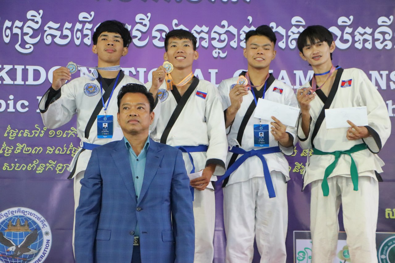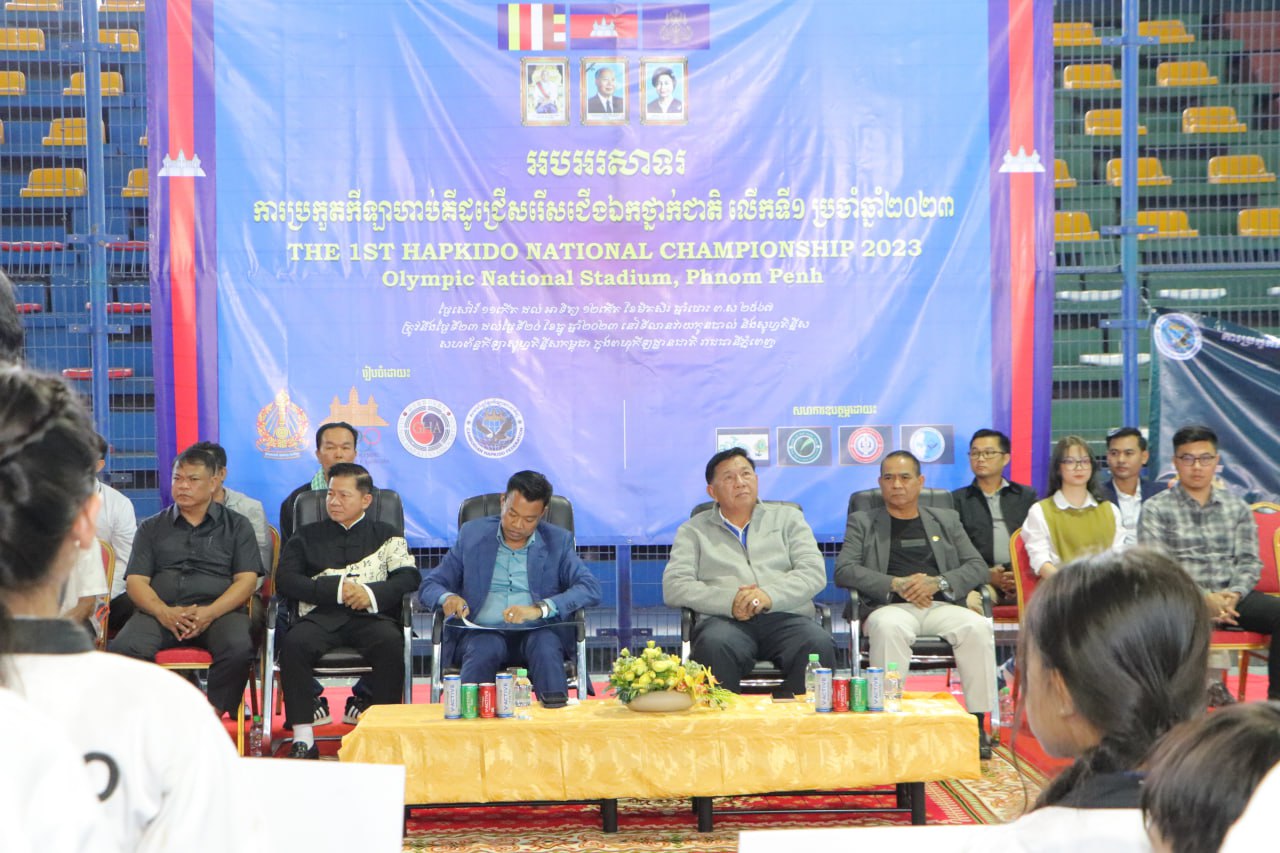 ភ្នំពេញ៖នាថ្ងៃទី២៤ ខែធ្នូ ឆ្នាំ២០២៣ លោកឧកញ៉ា សៅ សេងហាក់ ប្រធានសហព័ន្ធខ្មែរកីឡាហាប់គីដូ និងលោក ដួង មាសចំរើន អគ្គនាយករងនៃអគ្គនាយកដ្ឋានកីឡានៃក្រសួងអប់រំ យុវជន និងកីឡាបាន អញ្ជើញជាកិត្តិយសក្នុងឱកាសពិធីបិទរៀបចំការប្រកួតកីឡាហាប់គីដូជ្រើសរើសជើងឯកថ្នាក់ជាតិឆ្នាំ២០២៣ ដោយការប្រកួតនេះប្រើប្រាស់ថវិការបស់សហព័ន្ធខ្មែរកីឡាហាប់គីដូផ្ទាល់នៅពហុកីឡដ្ឋានជាតិអូឡាំពិក។