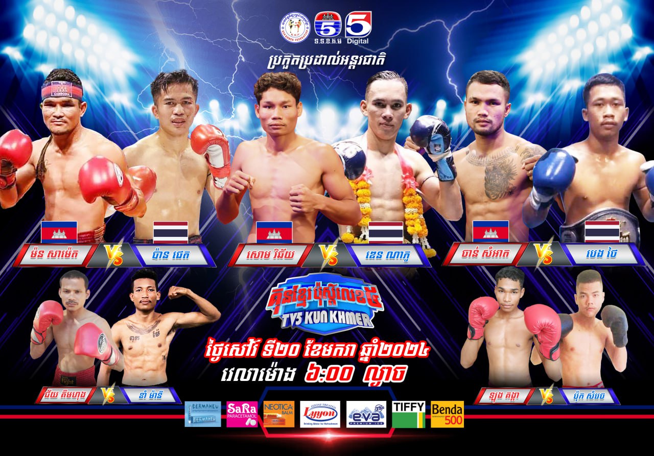 ភ្នំពេញ៖លើសង្វៀនTV5ថ្ងៃទី២០មករាឆ្នាំ២០២៤ខាងមុខនេះអ្នកប្រដាល់គុនខ្មែរជើង