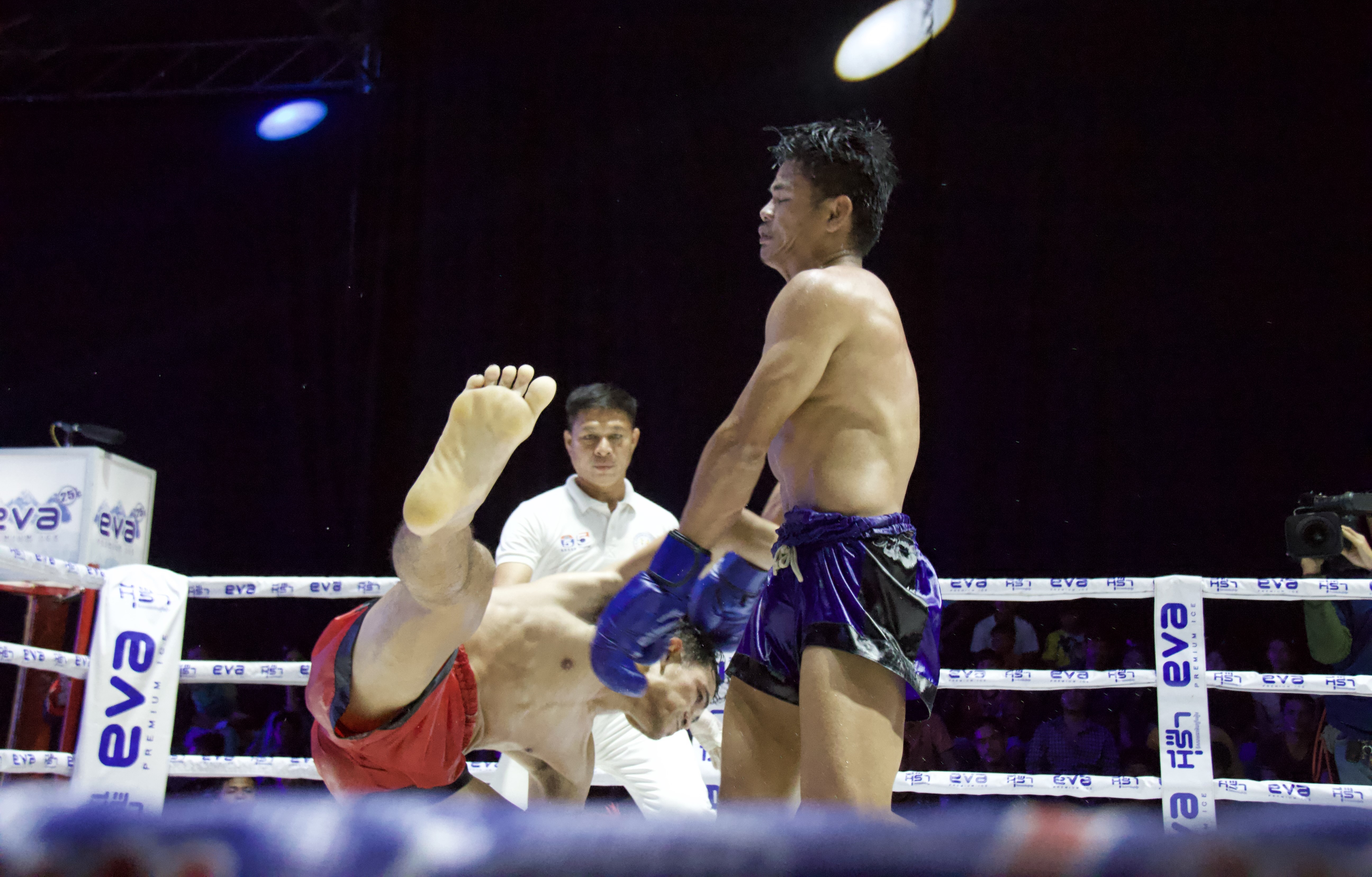 អៀងឡេងបានវាយប្រហារជើងក្រោមNok Krakchiepធ្វើឲ្យអ្នកប្រដាល់ថៃរូបនេះមាន