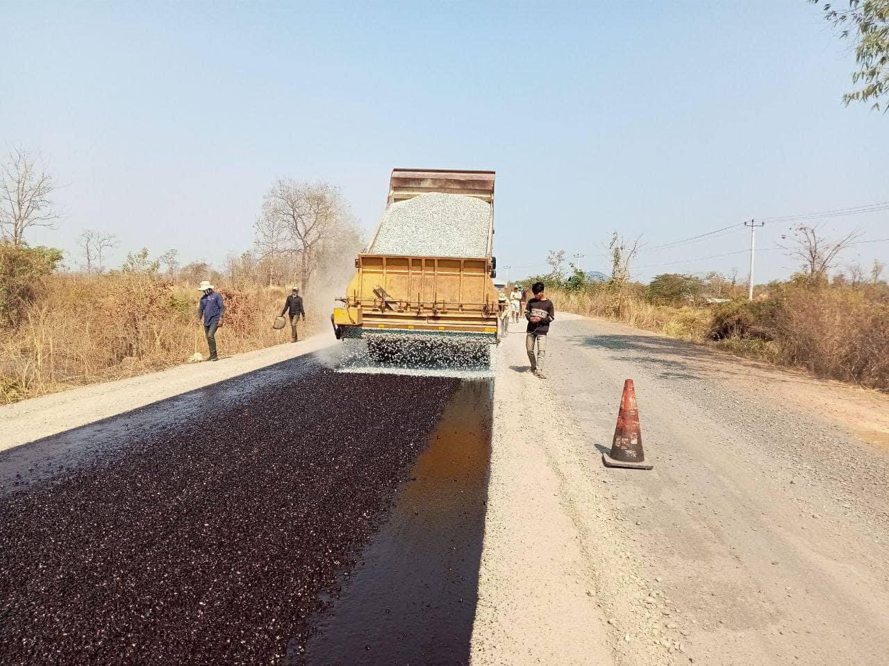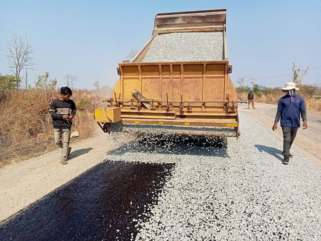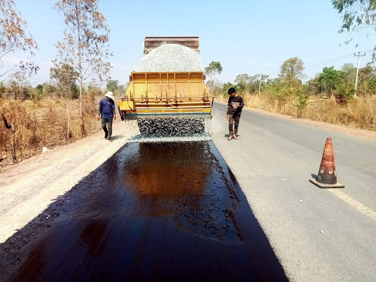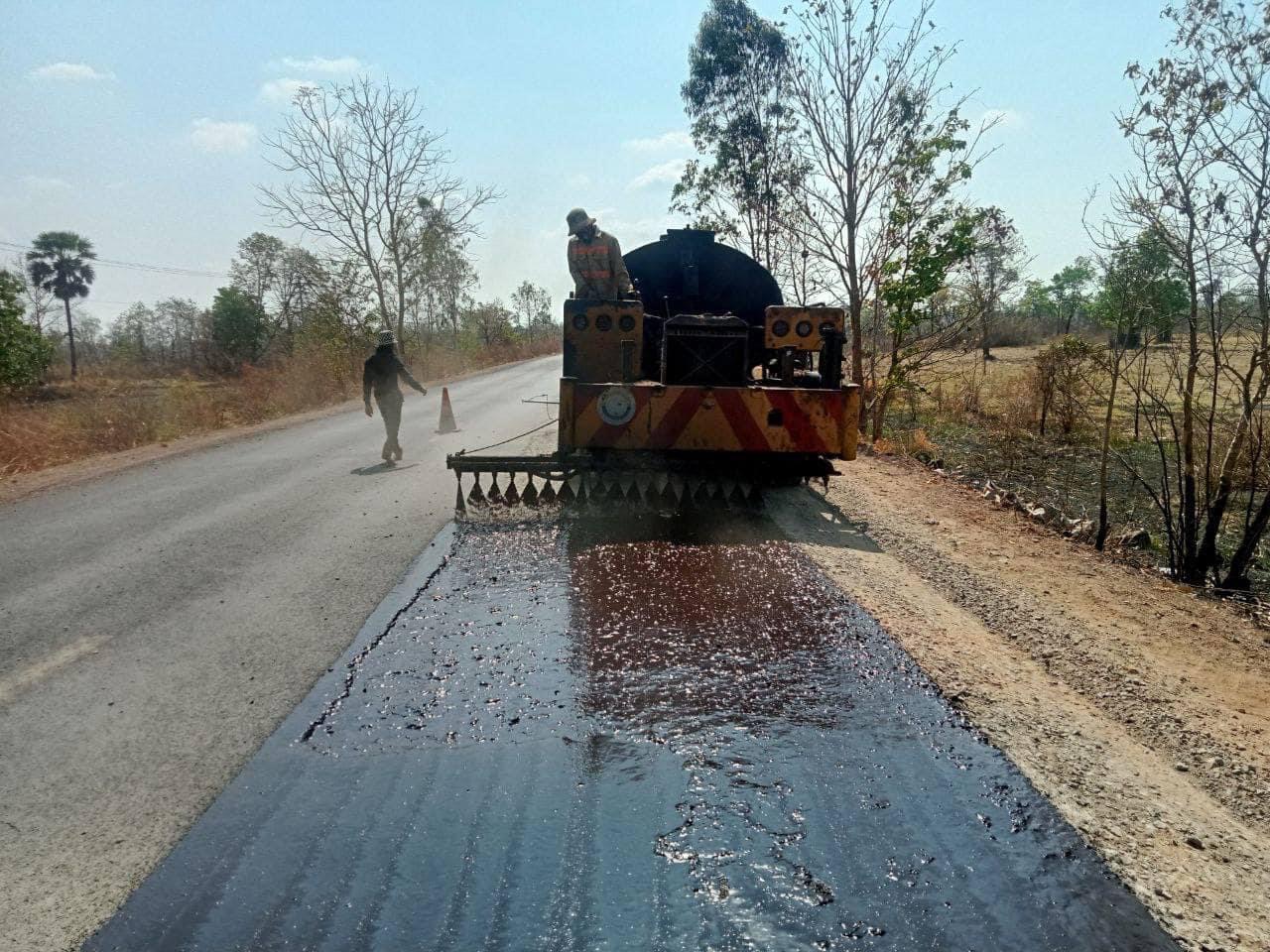 មន្ទីរសាធារណការ ខេត្តព្រះវិហារ បន្តសកម្មភាពស្រោចកៅស៊ូសៀលលើកំណាត់ផ្លូវជាតិលេខ៩ ប្រវែងជិត៧០គីឡូម៉ែត្រ