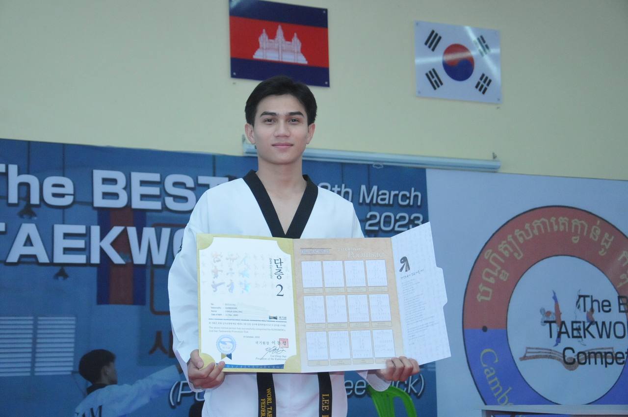ភ្នំពេញ៖ខេមរសហព័ន្ធកីឡាតេក្វាន់ដូនៅថ្ងៃទី១៣ ខែមីនា ឆ្នាំ២០២៤ បានបញ្ជូនគ្រូបង្វឹក គ្រូជំនួយ និងកីឡាករ-កីឡាការិនីតេក្វាន់ដូ WT ចំនួន ៧ នាក់ ក្នុងនោះកីឡាករ-កីឡាការិនីតេក្វាន់ដូ WT ៣ នាក់នៅប្រទេសកម្ពុជាចូលរួមព្រឹតិ្តការណ៍ការប្រកួត Asian Qualification Tournament for Paris 2024 Olympic Games នៅ Tai’an ប្រទេសចិន។
