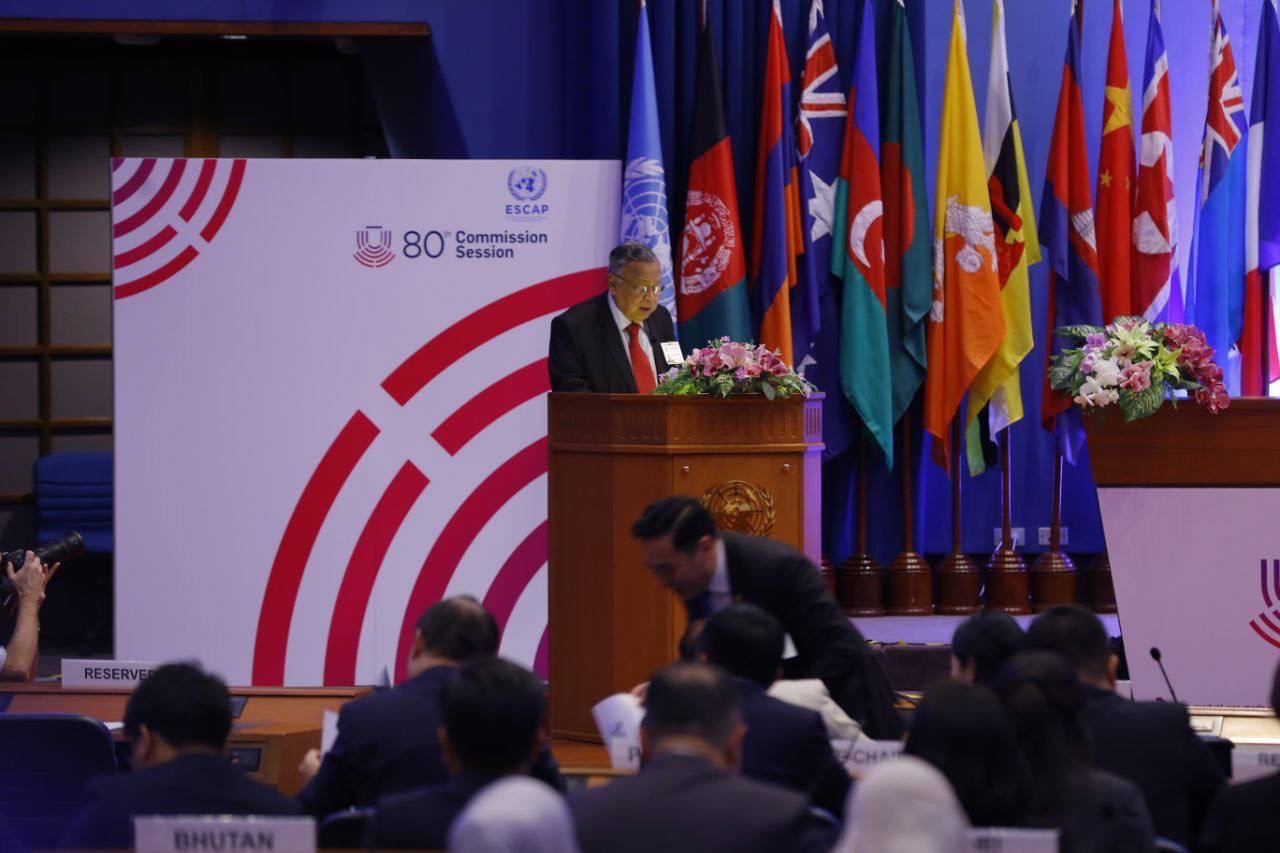ឯកឧត្ដម ទេសរដ្ឋមន្រ្តី លី ធុជ ដឹកនាំកិច្ចប្រជុំពេញអង្គថ្នាក់រដ្ឋមន្ត្រីស្តីពី ការប្រើប្រាស់នវានុវត្តន៍សម្រាប់ការអភិវឌ្ឍប្រកបដោយចីរភាពនៅអាស៊ី និងប៉ាស៊ីហ្វិក នៃ UNESCAP