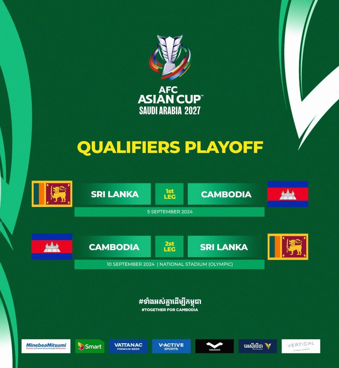 សម្រាប់ព្រាត្តិការណ៍AFC Asian Cup Saudi Arabia 2027ជុំទី១កម្ពុជាត្រូវជួបជាមួយស្រី លង្កា