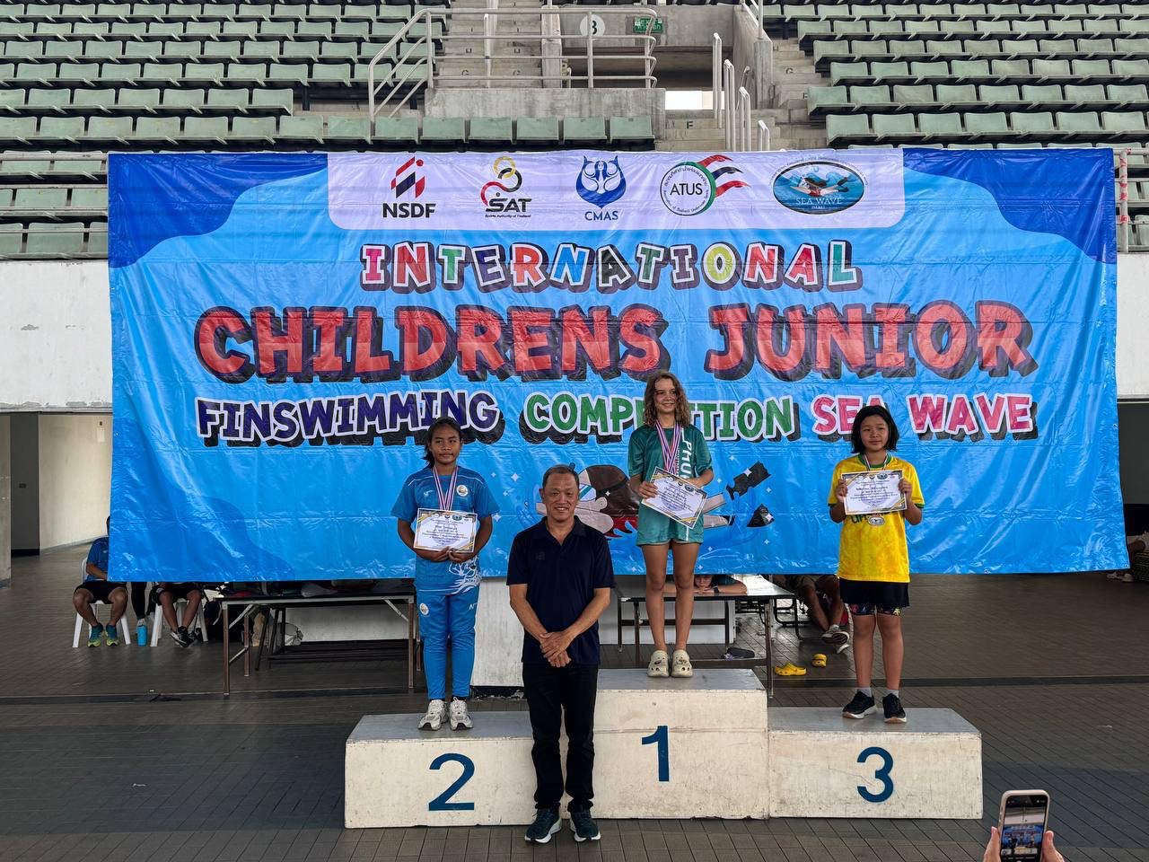 ចំណែកកីឡាករ ហែមថុន រ៉ូណាល់ ទទួលបានចំណាត់ថ្នាក់លេខ៤ លើប្រភេទវិញ្ញាសាបុរសហែលទឹកចម្ងាយ ៥០ ម៉ែត្រ Bifins (D 12 – 13) លើថេរវេលា ២៧.៨២ ក្នុងប្រកួតហែលទឹកពាក់ជើងទាអន្តរជាតិ (International Children Junior Finswimming Competition) នៅទីក្រុង Pathumthani ក្នុងប្រទេសថៃ។