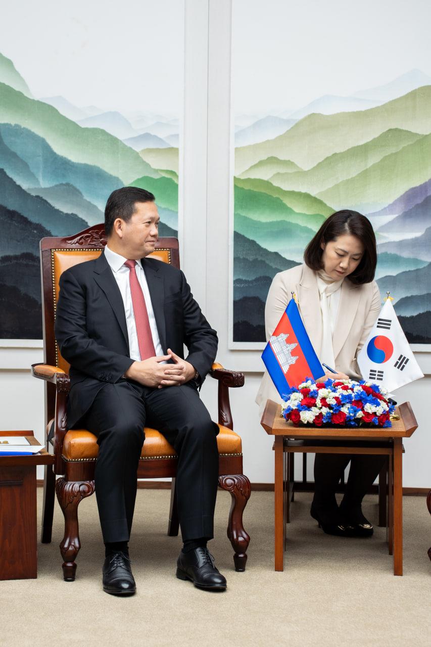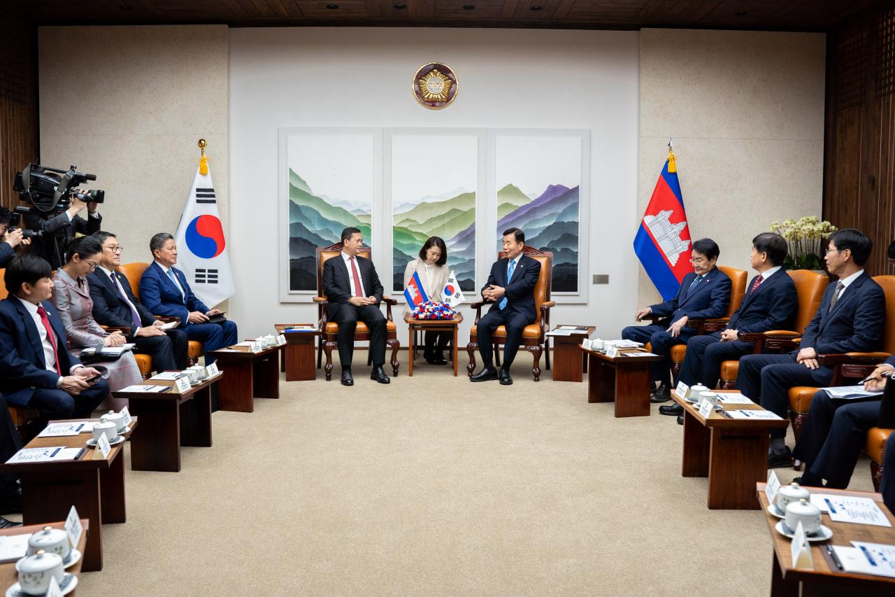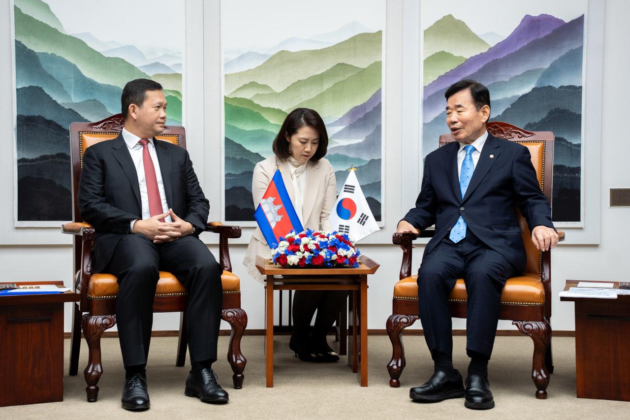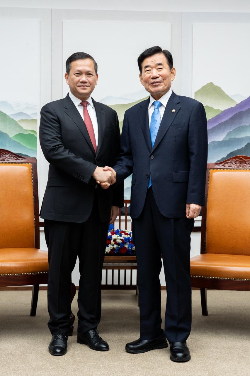 សម្តេចធិបតី ហ៊ុន ម៉ាណែត អញ្ជើញជួបសម្តែងការគួរសម និងពិភាក្សាការងារជាមួយប្រធានរដ្ឋសភាកូរ៉េ