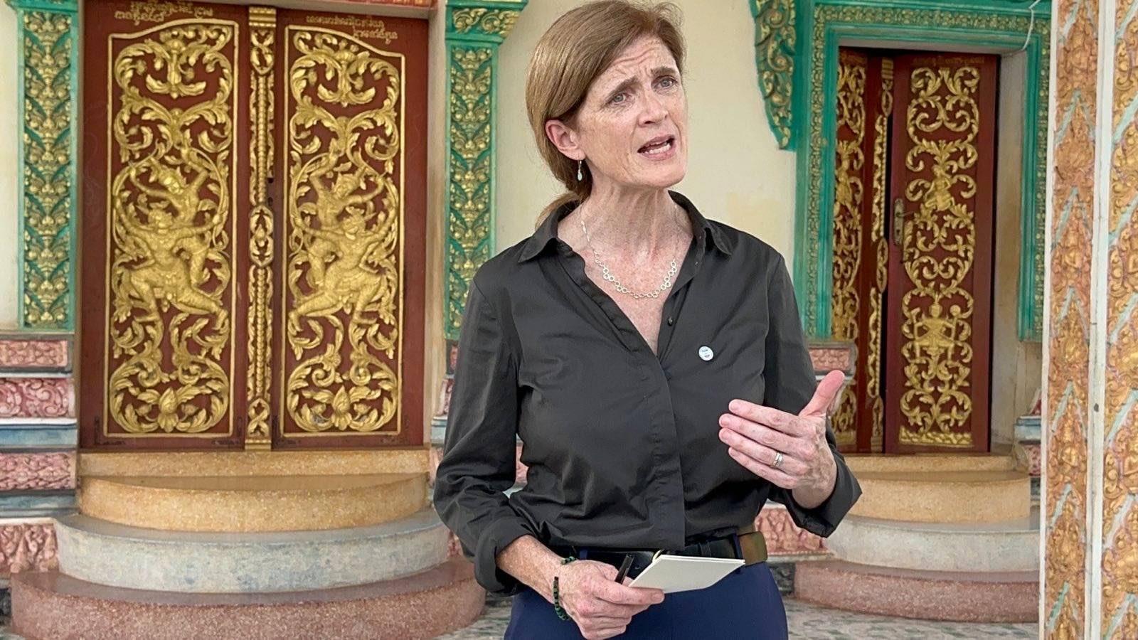 សូមជម្រាបថា អ្នកស្រី Power បាននិងកំពុងបំពេញទស្សនកិច្ចទៅខេត្តសៀមរាប និងរាជធានីភ្នំពេញ ដើម្បីបង្ហាញអំពីគម្រោងអភិវឌ្ឍន៍ដ៏ជោគជ័យរបស់សហរដ្ឋអាមេរិក ក្នុងការកែលម្អការថែទាំសុខភាព ការការពារទន្លេមេគង្គ និងបញ្ជាក់ឡើងវិញអំពីការប្តេជ្ញាចិត្តរបស់សហរដ្ឋអាមេរិកចំពោះប្រជាជនកម្ពុជា រួមទាំងរួមគ្នាដើម្បីពង្រឹងទំនាក់ទំនងទ្វេភាគីឲ្យរឹងមាំ ក្នុងការគាំទ្រដល់សេចក្តីរុងរឿង ភាពរឹងមាំ និងវឌ្ឍនភាពនៃការអភិវឌ្ឍក្នុងប្រទេសកម្ពុជា៕