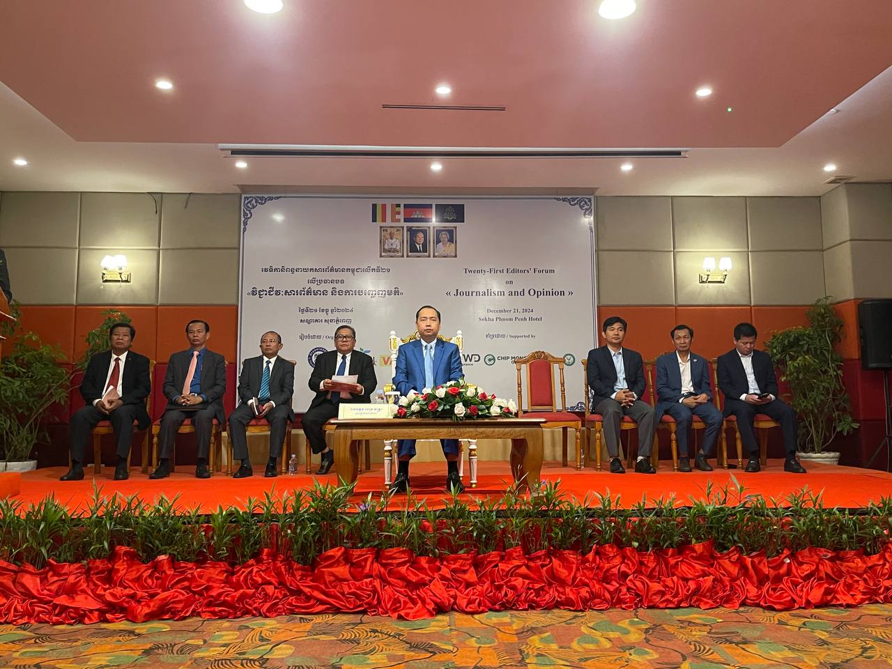 វេទិកានិពន្ធនាយកសារព័ត៌មានកម្ពុជា លើកទី២១ ដែលមានការចូលរួមពីចាងហ្វាង និពន្ធនាយក តំណាងសមាគម និងជាអ្នកដឹកនាំស្ថាប័នសារព័ត៌មាន ប្រមាណជាង១០០នាក់ត្រូវបានធ្វើឡើងនាព្រឹកថ្ងៃទី២១ធ្នូឆ្នាំ២០២៤នេះនៅនៅសណ្ឋាគារ រ៉េស៊ីដង់សុខា ភ្នំពេញក្រោមអធិបតីភាព លោក នេត្រ ភក្ត្រា រដ្ឋមន្ត្រីក្រសួងពត៏មាន។