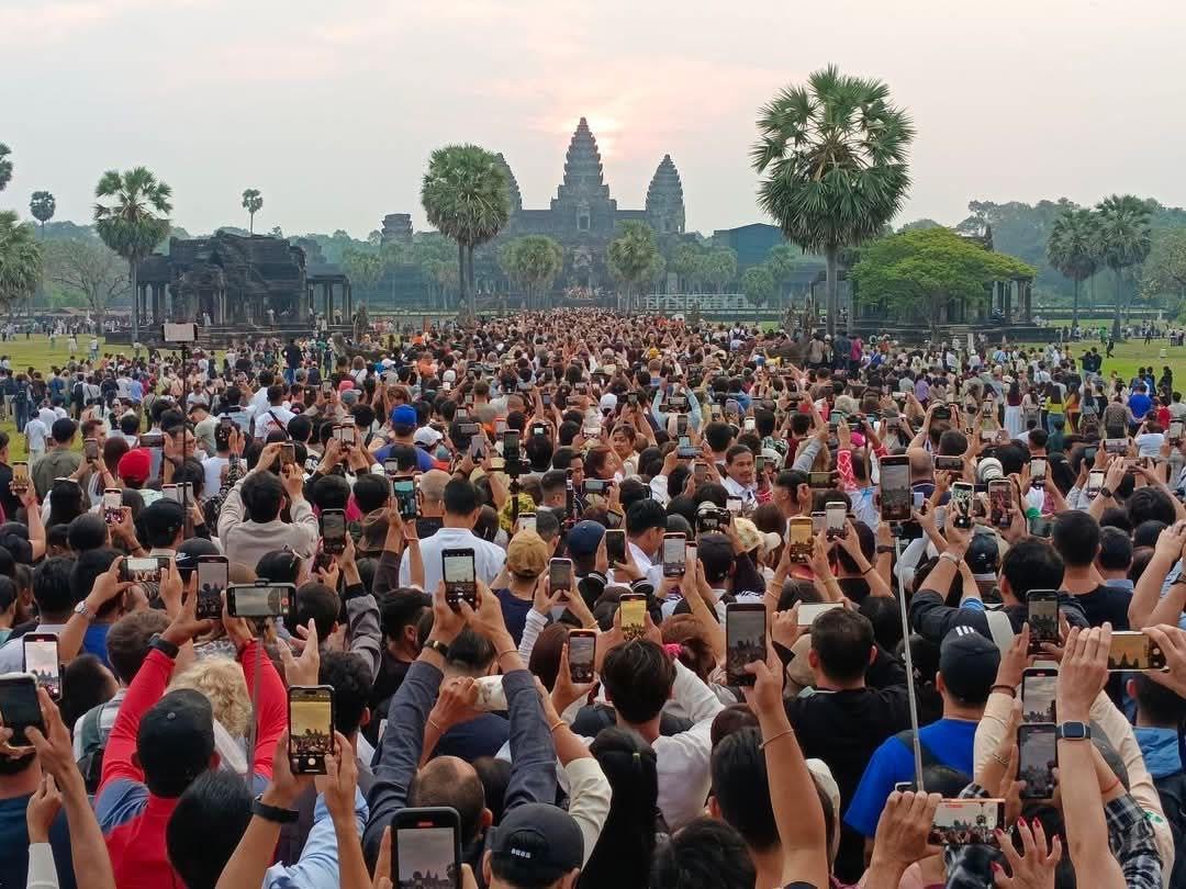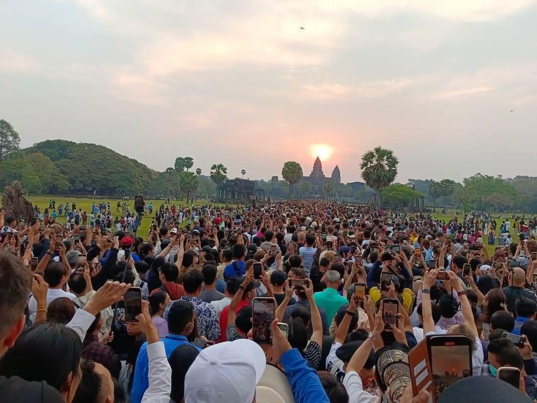 សៀមរាប៖សមរាត្រី ឬព្រះអាទិត្យរះចំកំពូលប្រាសាទអង្គរវត្ដ បានទាក់ទាញអ្នកទេសចរជាតិ និងអន្តរជាតិយ៉ាងច្រើនកុះករមកទស្សនា។
