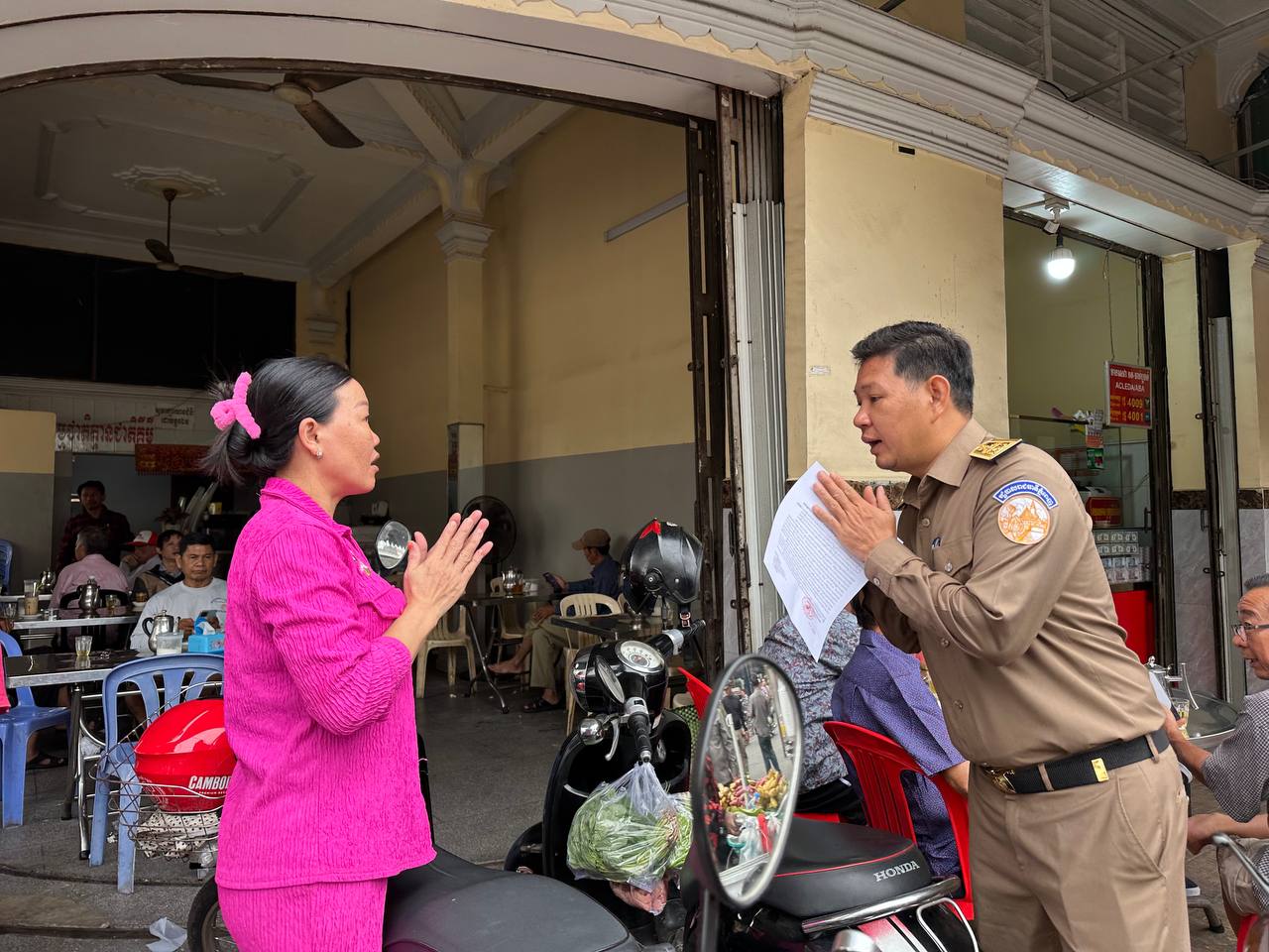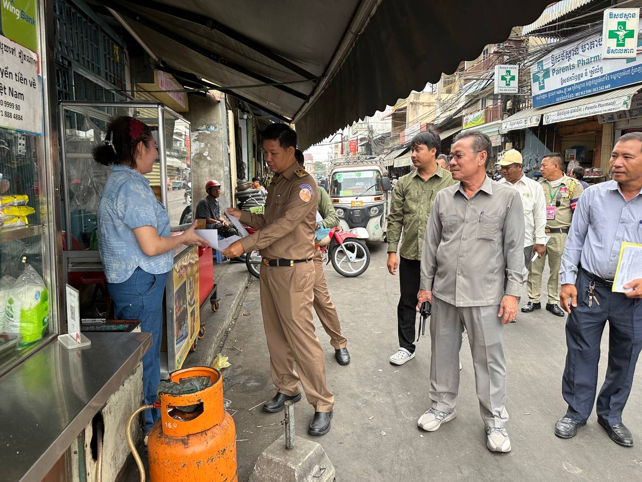 ភ្នំពេញ៖ ដើម្បីរក្សាបាននៅសណ្តាប់ធ្នាប់សាធារណៈល្អ នៅព្រឹកថ្ងៃទី២៥ ខែមីនា ឆ្នាំ២០២៥ លោក ហ៊ត គឹមនី អភិបាលរងខណ្ឌច្បារអំពៅ បានដឹកនាំកម្លាំងចុះរៀបចំសណ្តាប់ធ្នាប់ ចុះណែនាំ និងចែកលិខិតជូនដំណឹង ស្តីពីការរៀបចំសណ្តាប់ធ្នាប់តាមបណ្តោយផ្លូវលេខ៣៦៩ ចាប់ពីគល់ស្ពានព្រះមុនីវង្សចាស់ រហូតដល់តំបន់ច្រាំងបាក់ ស្ថិតនៅក្នុងសង្កាត់ច្បារអំពៅទី២ ។
