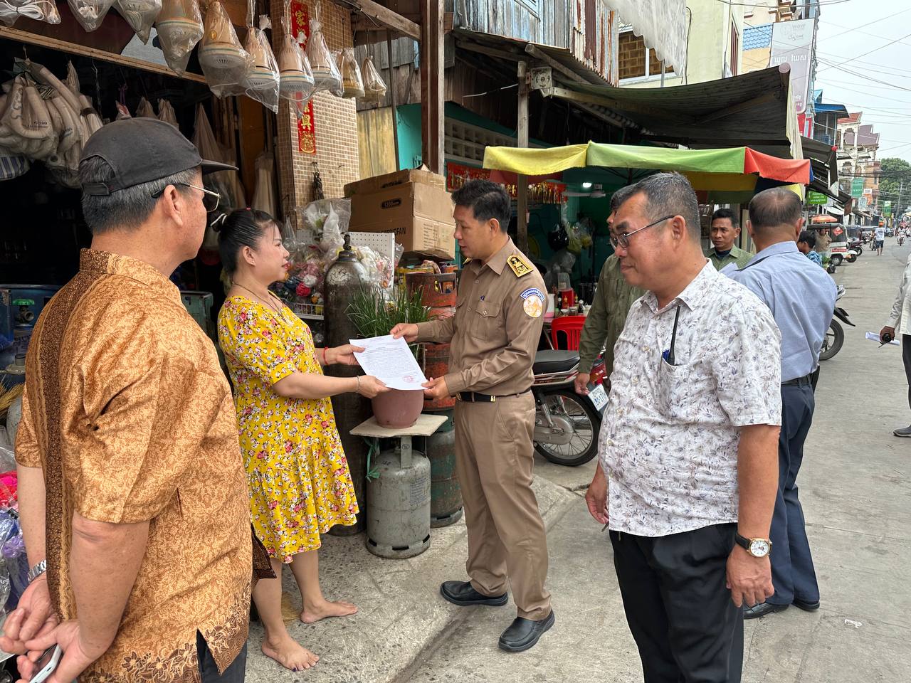 លោក ហ៊ត គឹមនី អភិបាលរងខណ្ឌបានឱ្យដឹងថា កន្លងមករដ្ឋបាលខណ្ឌ តែងតែចុះណែនាំ និងចែកលិខិតជូនដំណឹងដល់បងប្អូនប្រជាពលរដ្ឋ និងអាជីករ ក្នុងន័យមិនអនុញ្ញាតឱ្យដាក់តាំងលក់ទំនិញ និងសម្ភារផ្សេងៗ នៅលើផ្លូវ និងចិញ្ចើមផ្លូវសាធារណៈ។