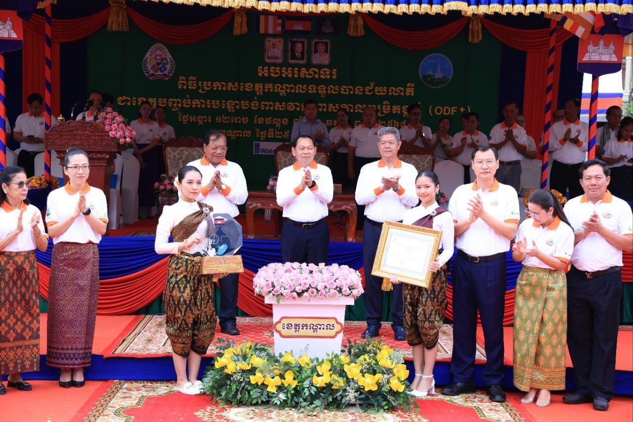 កណ្តាល៖រដ្ឋបាលខេត្តកណ្ដាល បានរៀបចំពិធីអបអរសាទរខេត្តកណ្ដាល ទទួលបានជ័យលាភី ជាខេត្តបញ្ចប់ការបន្ទោបង់ពាសវាលពាសកាលកម្រិតខ្ពស់ (ODF+) ដែលបានប្រព្រឹត្តទៅនៅថ្ងៃទី២៥ ខែមីនា ឆ្នាំ២០២៥ នៅសួនច្បារមាត់ទន្លេ ក្រុងតាខ្មៅ ក្រោមអធិបតីភាពលោម ឆាយ ឫទ្ធិសែន រដ្ឋមន្រ្តីក្រសួងអភិវឌ្ឍន៍ជនបទ។
