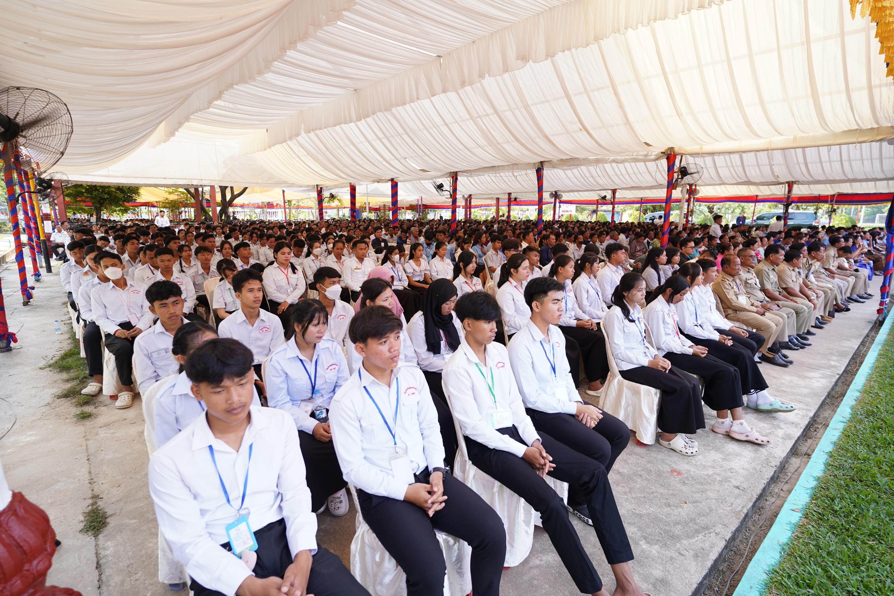 ការណ៍នេះ សម្ដេចនាយករដ្ឋមន្ត្រី បានមានប្រសាសន៍ថា៖ «សិស្សានុសិស្សទាំងអស់ត្រូវខិតខំប្រឹងប្រែងរៀនសូត្រ ចាប់យកឱកាស ពីព្រោះយើងជាអ្នកកំណត់ខ្លួនឯង ថាជាបន្ទុកសង្គម ឬជាធនធាននៃសង្គម បើយើងជាមនុស្សដែលមានគុណធម៌ សីលធម៌ យើងមានចំណេះដឹងសមត្ថភាព យើងជាធនធានរបស់សង្គមជាតិ របស់គ្រួសារ។ ផ្ទុយទៅវិញ បើយើងជាប្រព្រឹត្តអំពើមិនគប្បី (ប្រើ)គ្រឿងញៀន កាប់ចាក់ យើងមិនមែនជាធនធានទេ គឺយើងជាបន្ទុកសម្រាប់គ្រួសារ និងបន្ទុកខ្លួនឯងទៀត»។