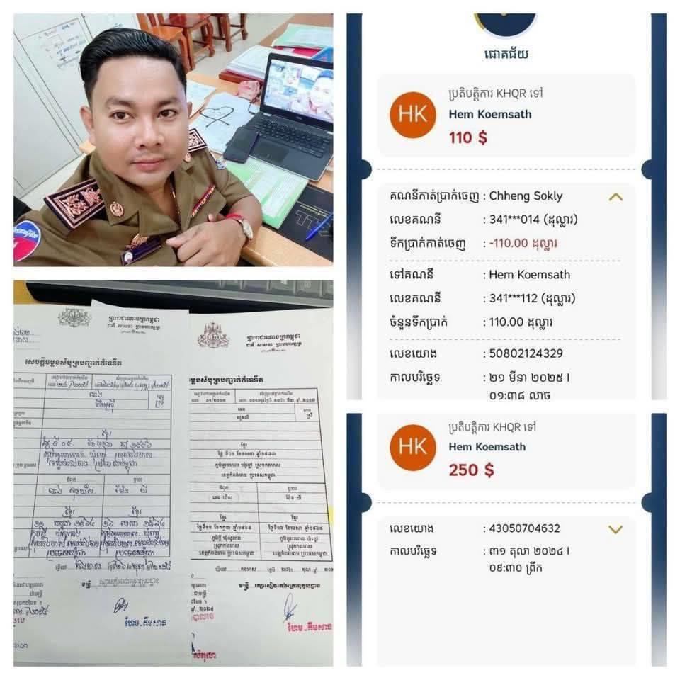 ប្រើធរក្ដៅ!បញ្ចប់មុខតំណែងប្រធានការិយាល័យរដ្ឋបាល និងហិរញ្ញវត្ថុ ស្រុកកងមាស ក្រោយយកលុយពលរដ្ឋ ៣៦០ដុល្លារ រឿងកែសំបុត្រកំណើត