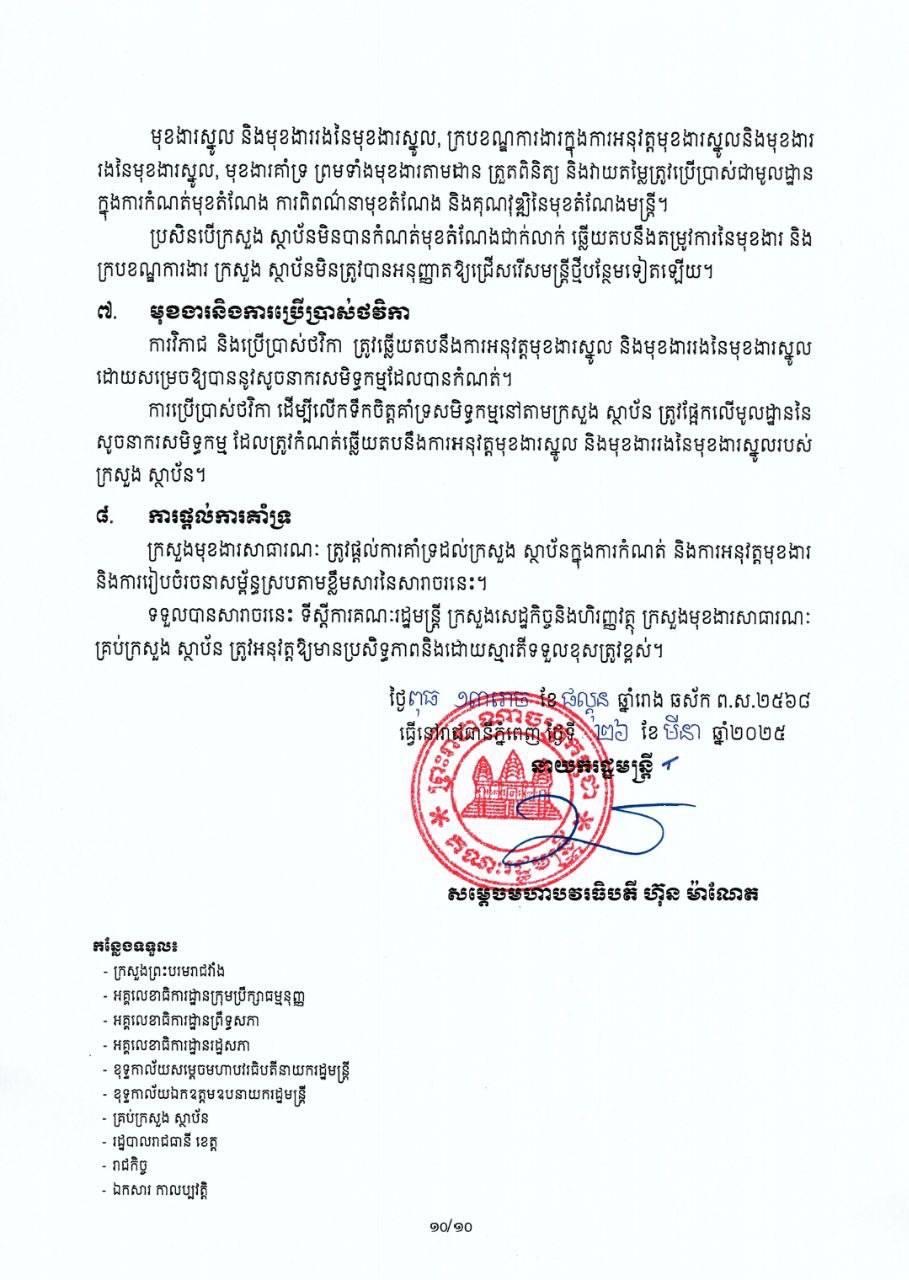សម្តេចធិបតី ចេញសារាចរណែនាំក្រសួង ស្ថាប័នរបស់រដ្ឋរៀបចំការកំណត់ និងអនុវត្តមុខងារឱ្យច្បាស់លាស់ កុំឱ្យជាន់តួនាទីភារកិច្ចគ្នា ដើម្បីប្រសិទ្ធភាព និងស័ក្តិសិទ្ធភាពការងារ