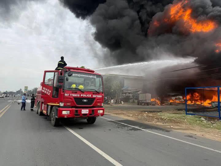 កណ្តាល៖នៅព្រឹកថ្ងៃទី១ ខែមេសា ឆ្នាំ២០២៥ មានហេតុការណ៍អគ្គិភ័យភ្លើងឆេះរោងចក្រផលិតស័ង្កសី និងសម្ភារជ័រ ព្រមទាំងផ្ទះប្រជាពលរដ្ឋ ស្ថិតនៅចំណុចភូមិថ្លើក ឃុំពើក ស្រុកអង្គស្នួល ខេត្តកណ្តាល យ៉ាងសន្ធោសន្ធៅ។