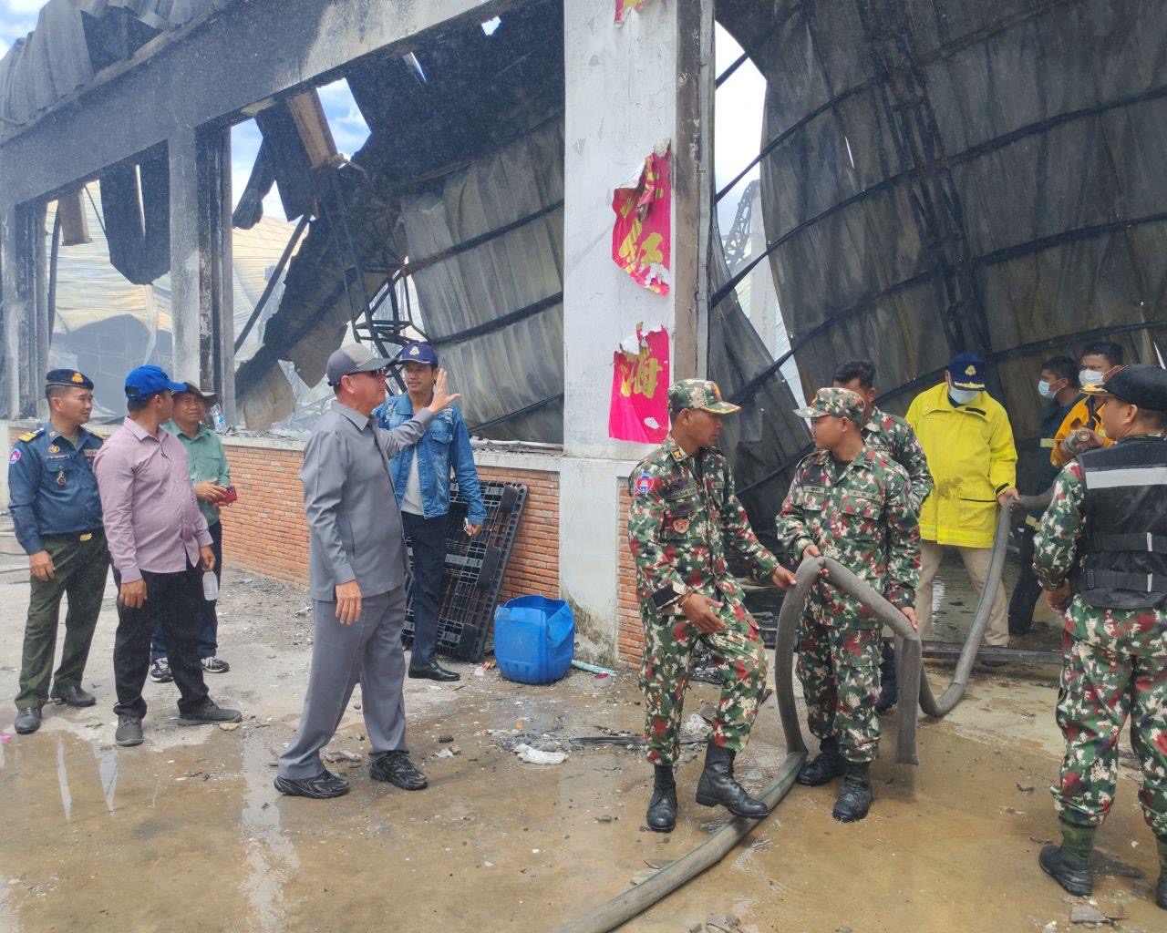 អភិបាលខេត្តកណ្តាលដឹកនាំកម្លាំងសមត្ថកិច្ចប្រើរថយន្តពន្លត់អគ្គិភ័យជាច្រើនគ្រឿងបាញ់ពន្លត់ភ្លើង ឆេះរោងចក្រផលិតស័ង្កសី និងសម្ភារជ័រ