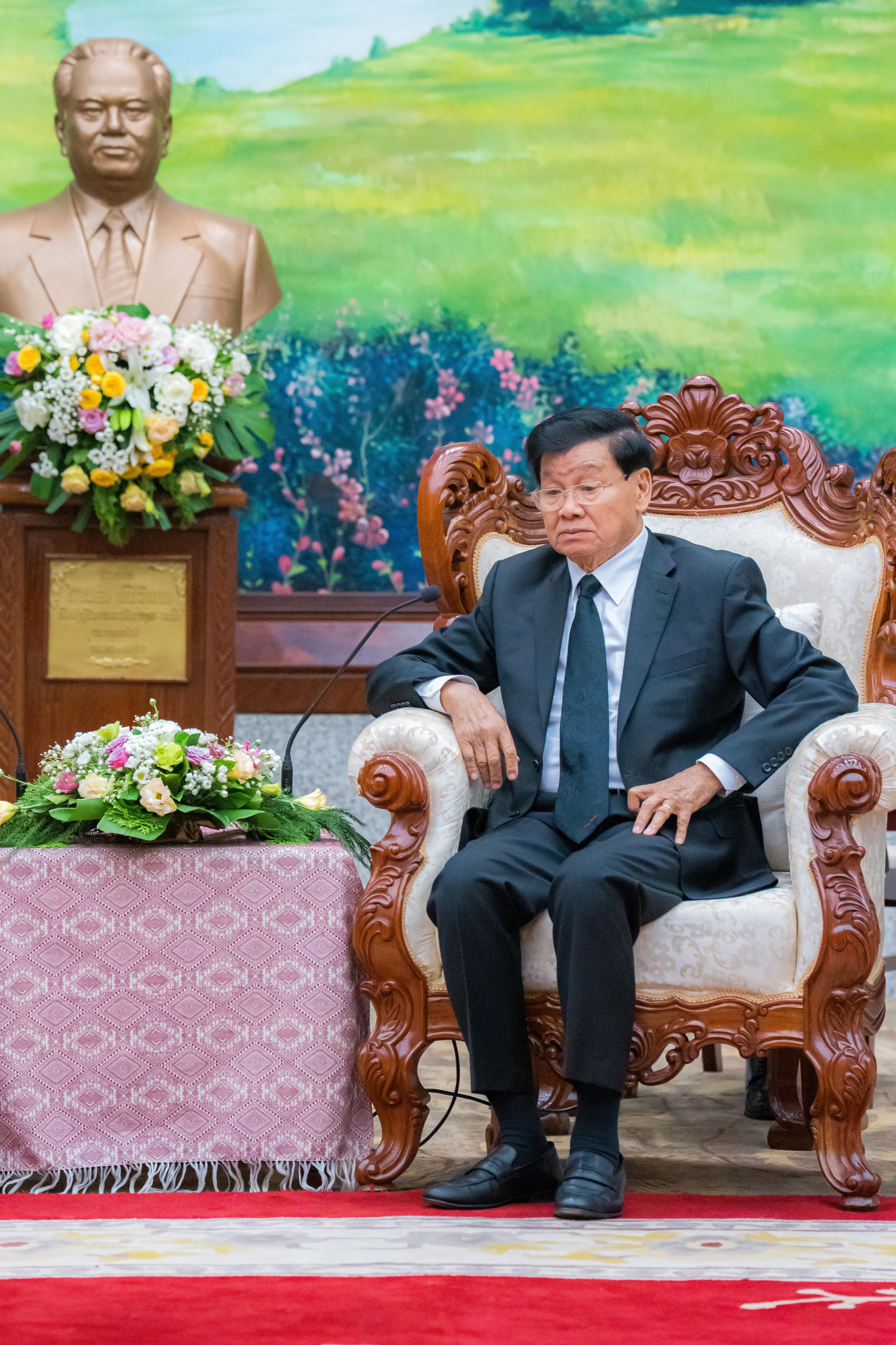 ប្រធានរដ្ឋឡាវ វត្តមានរបស់សម្តេចមហាបវរធិបតីនាពេលនេះ បង្ហាញឱ្យឃេីញនូវទំនាក់ទំនង ជាប្រពៃណី មិត្តភាព សាមគ្គីភាព និង ភាពជា ដៃគូ យុទ្ធសាស្ត្រ គ្រប់ ជ្រុងជ្រោយ និង យូរអង្វែង រវាង ប្រទេសទាំងពីរ