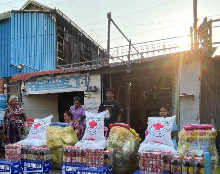 បន្ទាប់ពីបានដឹកនាំអន្តរាគមន៍ពន្លត់អគ្គីភ័យរួចមក លោក ចេង មុនីរ៉ា អភិបាលខណ្ឌ និងជាប្រធានកិត្តិយសអនុសាខាកាកបាទក្រហមកម្ពុជា ខណ្ឌច្បារអំពៅ បានចាត់អោយអនុសាខាកាកបាទក្រហមខណ្ឌ នាំយកអំណោយសង្គ្រោះបឋម រួមមាន ៖ គ្រឿងឧបភភោគ-បរិភោគ សម្ភារៈប្រើប្រាស់ និងថវិកាមួយចំនួន ផ្តល់ជូនភ្លាមៗផងដែរ ។