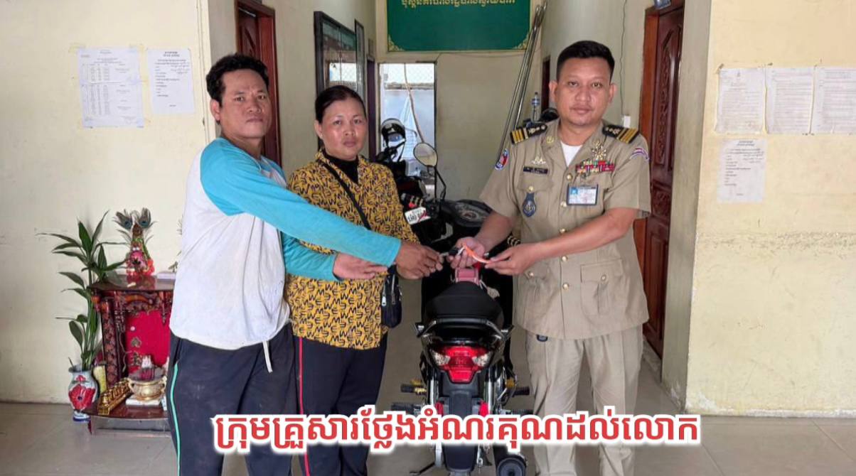 ក្រុមគ្រួសារជនរងគ្រោះ ថ្លែងអំណរគុណដល់នគរបាលខណ្ឌប្ញស្សីកែវ បានរកម៉ូតូឃើញ វិញក្រោយត្រូវជនសង្ស័យ២នាក់ ប្រើកាំបិតភ្ជង់ប្លន់