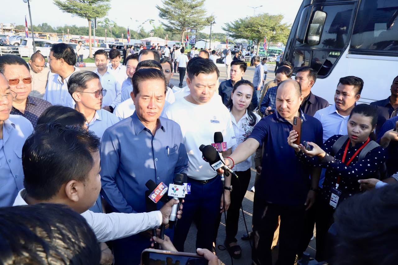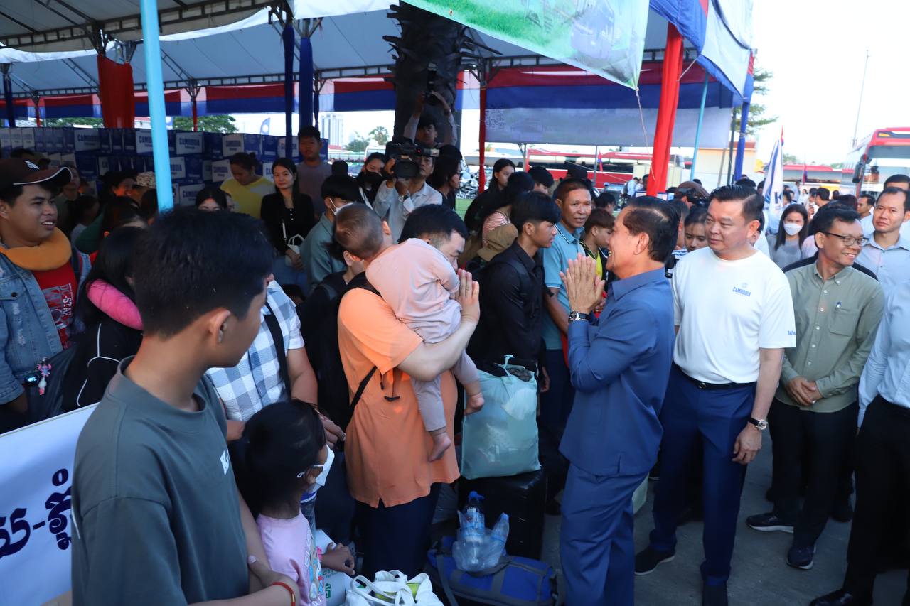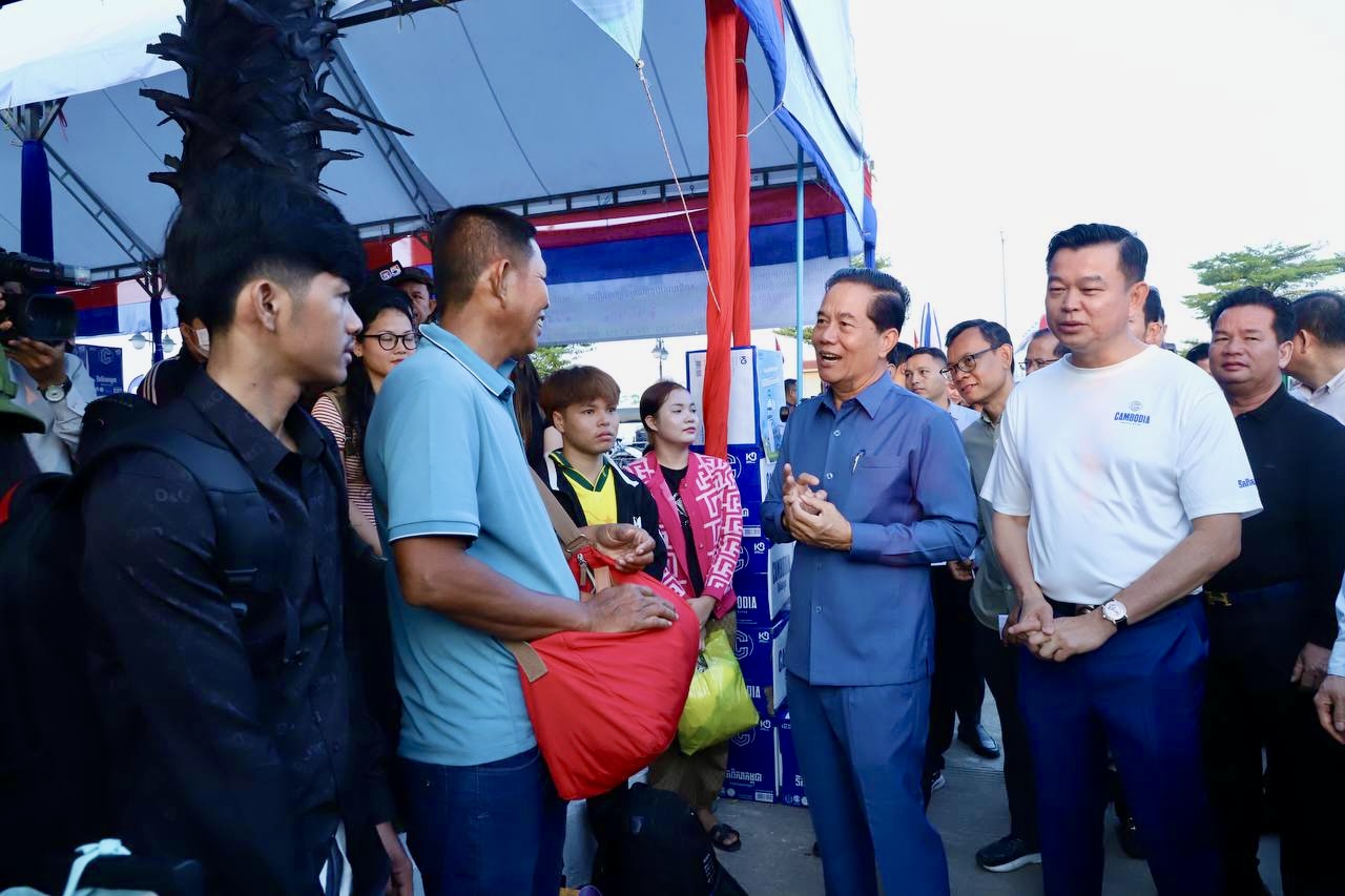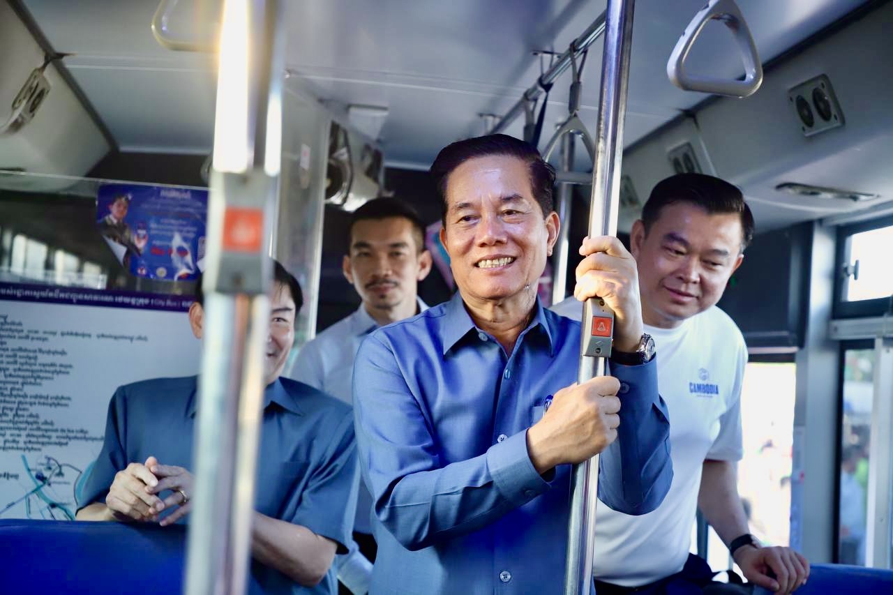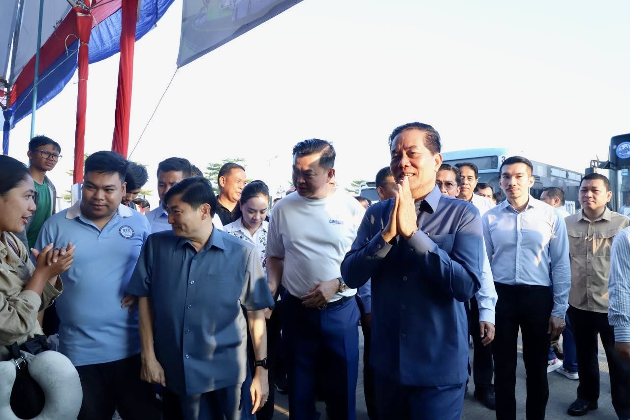 អភិបាលរាជធានីភ្នំពេញនិង ឯកឧត្ដម ហេង សួរ រដ្ឋមន្ត្រីក្រសួងការងារ អញ្ជើញជូនដំណើរបងប្អូនប្រជាពលរដ្ឋ កម្មករកម្មការិនីឡើងជិះរថយន្តក្រុង