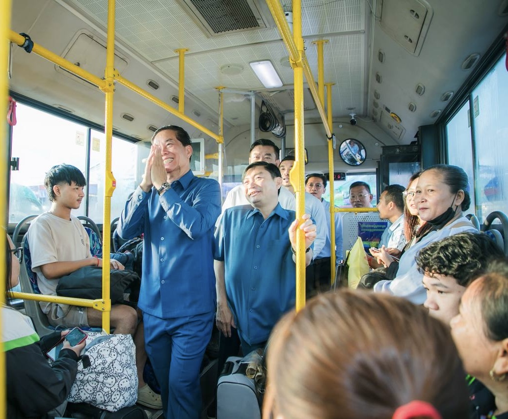 នេះបើតាមការបញ្ជាក់ឱ្យដឹងពីឯកឧត្ដមឃួង ស្រេងអភិបាលនៃគណៈអភិបាលរាជធានីភ្នំពេញក្នុងឱកាសដែលលោកនិង ឯកឧត្ដម ហេង សួរ រដ្ឋមន្ត្រីក្រសួងការងារ និងបណ្តុះបណ្តាលវិជ្ជាជីវៈអញ្ជើញជូនដំណើរបងប្អូនប្រជាពលរដ្ឋ កម្មករកម្មការិនីឡើងជិះរថយន្តក្រុងដោយមិនគិតថ្លៃនៅទីលានប្រជាធិបតេយ្យ មុខឃ្លាំងសាំង ក្នុងខណ្ឌឬស្សីកែវនាព្រឹកព្រលឹមថ្ងៃទី១២ខែមេសាឆ្នាំ២០២៥នេះ។