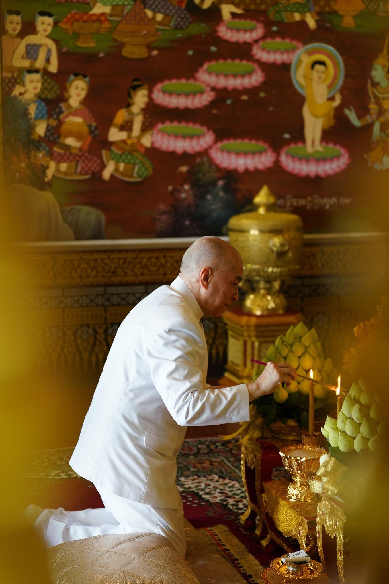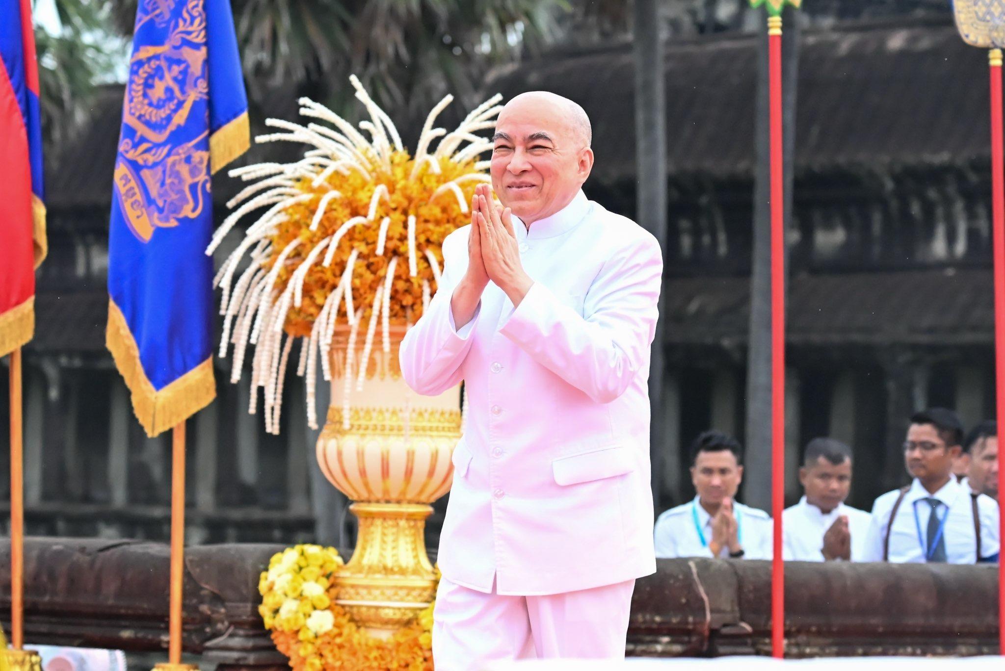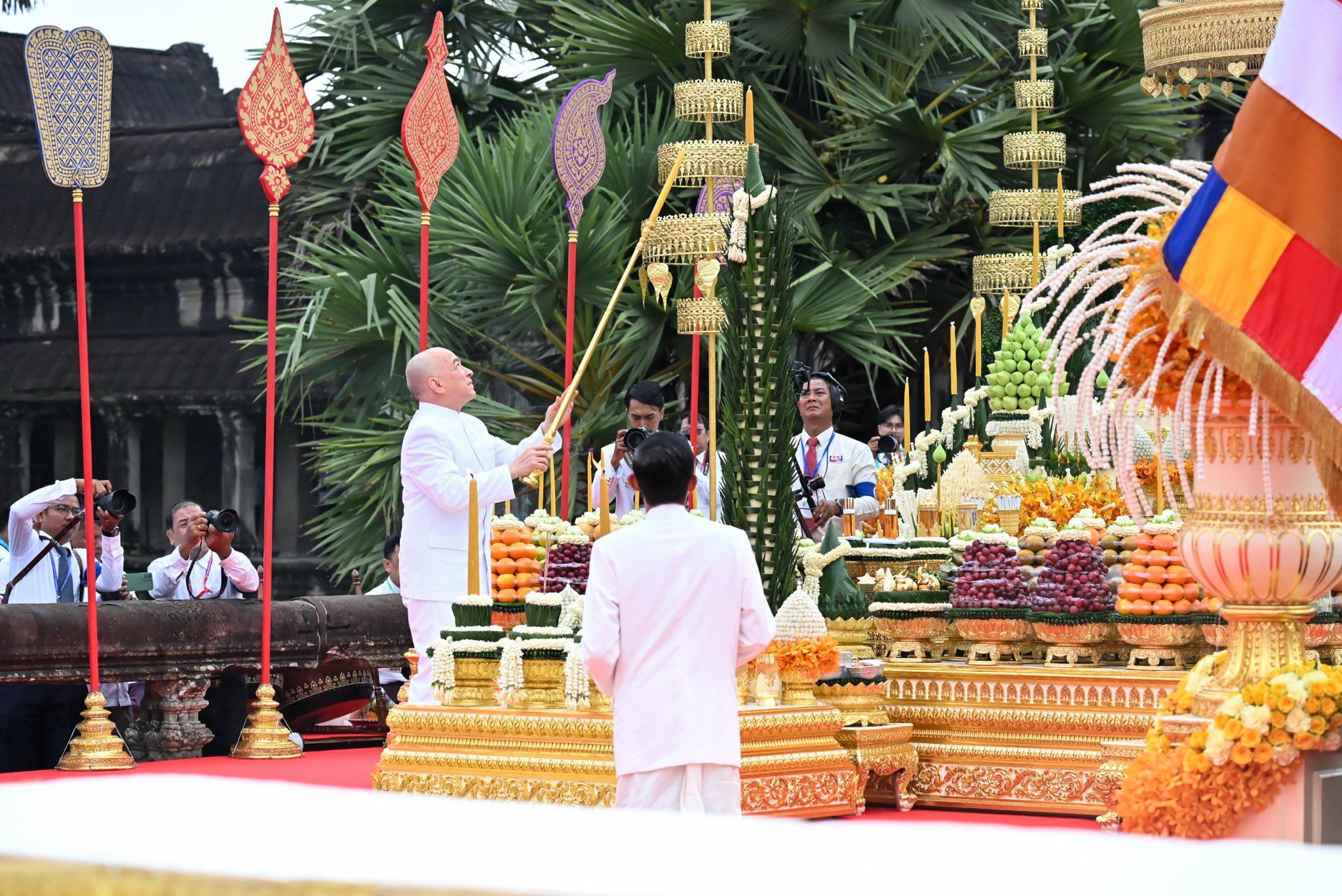 ព្រះមហាក្សត្រយាងបួងសួងចម្រើនសេចក្តីសុខជូនជាតិកម្ពុជា នៅប្រាសាទអង្គរវត្ត